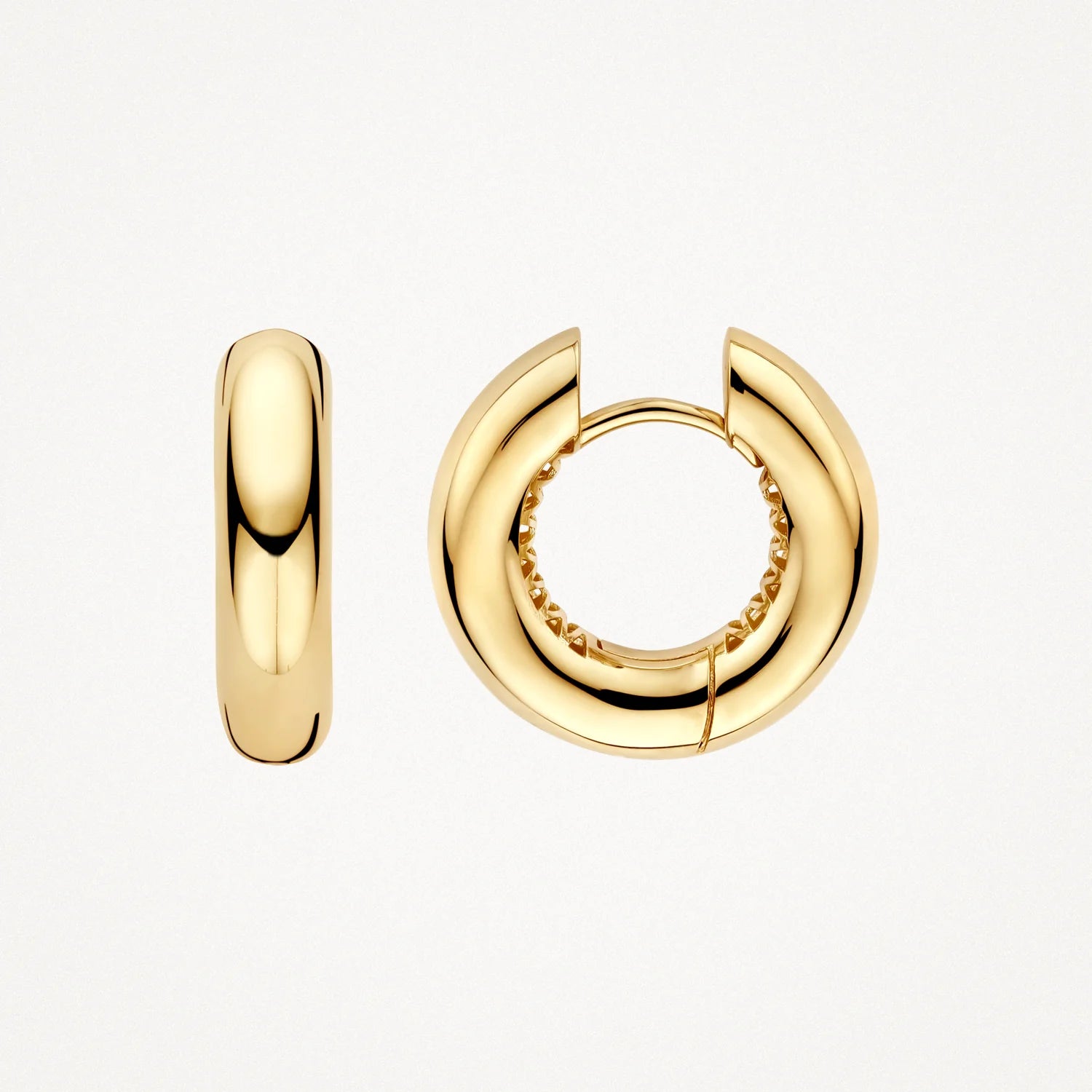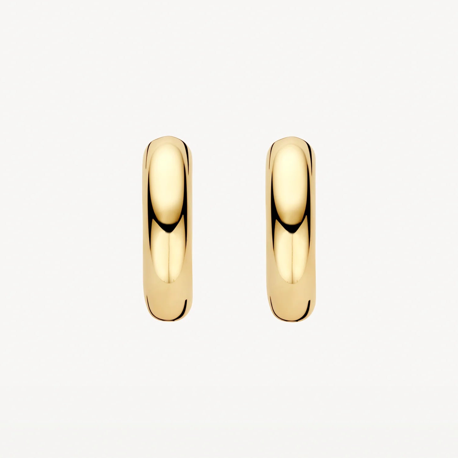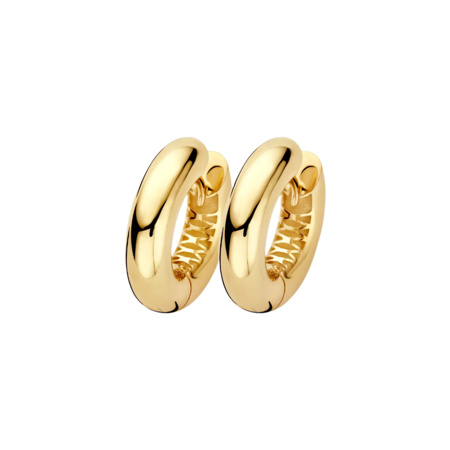 Disse elegante øreringe i 14 karat guld har en blankpoleret overflade, der giver et tidløst og klassisk udtryk. Med deres enkle og sofistikerede design passer de perfekt til både hverdag og festlige lejligheder.