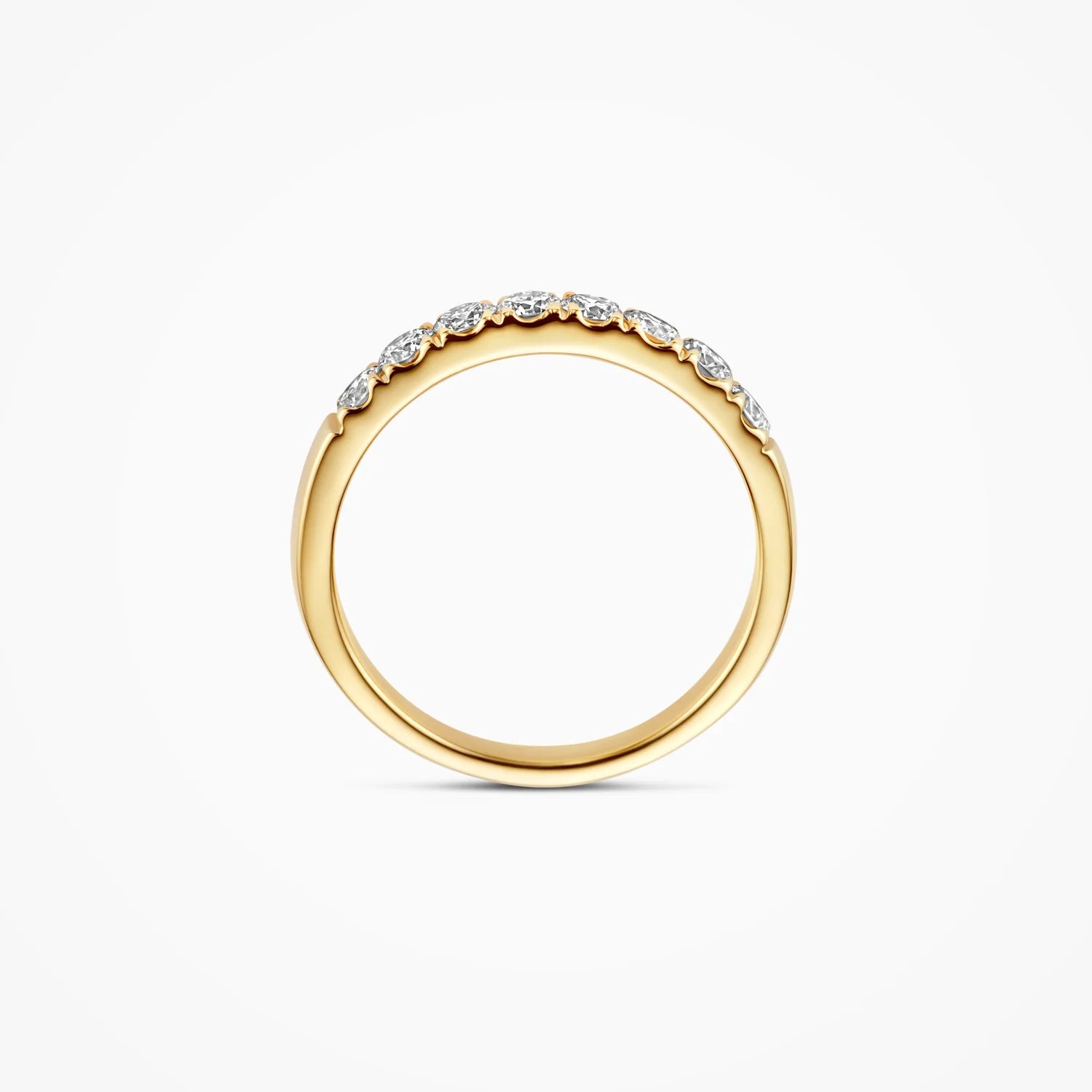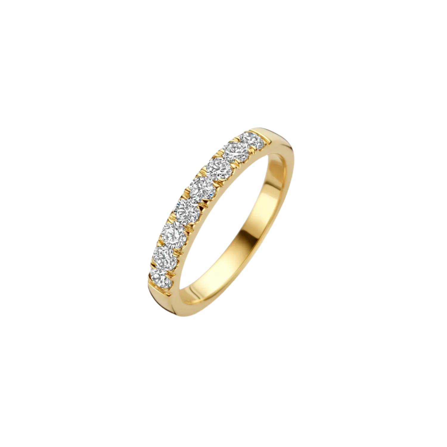 Denne smukke ring i 14 karat guld er prydet med funklende lab-grown diamanter på i alt 0,56 ct, der stråler i en elegant række hen over den blankpolerede overflade. Det klassiske og tidløse design gør ringen perfekt både som gave, vielsesring eller en særlig gave til dig selv.