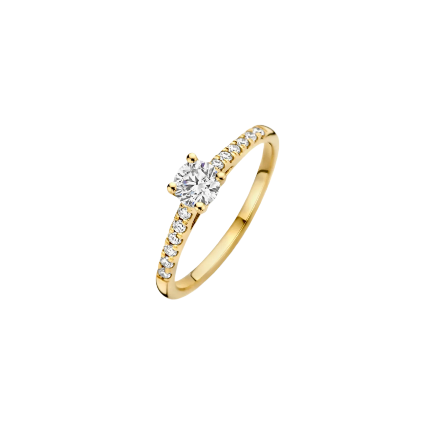 Den blankpolerede overflade fremhæver diamantens naturlige glans og giver ringen et feminint og klassisk design, der passer perfekt til både hverdag og særlige lejligheder. Ringen kan bæres alene som et elegant statement eller sammen med andre smykker for et personligt look.