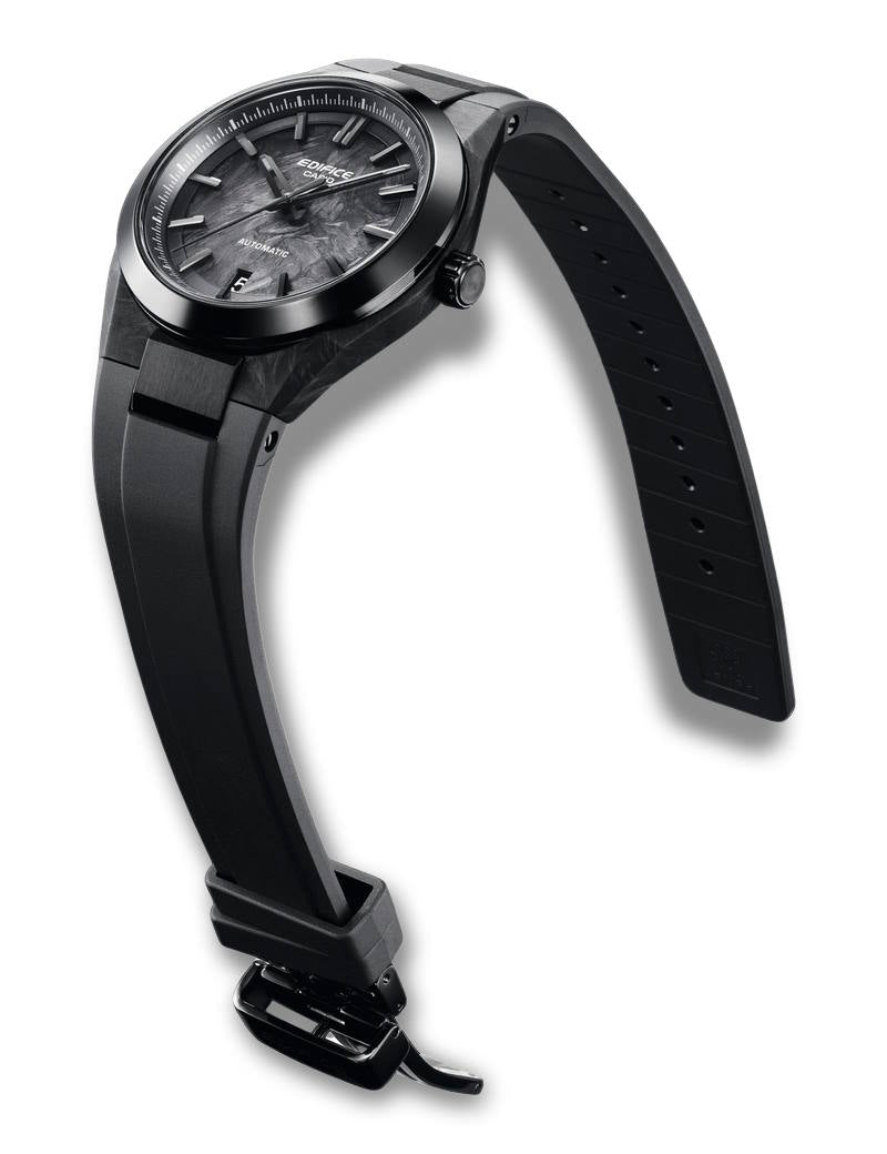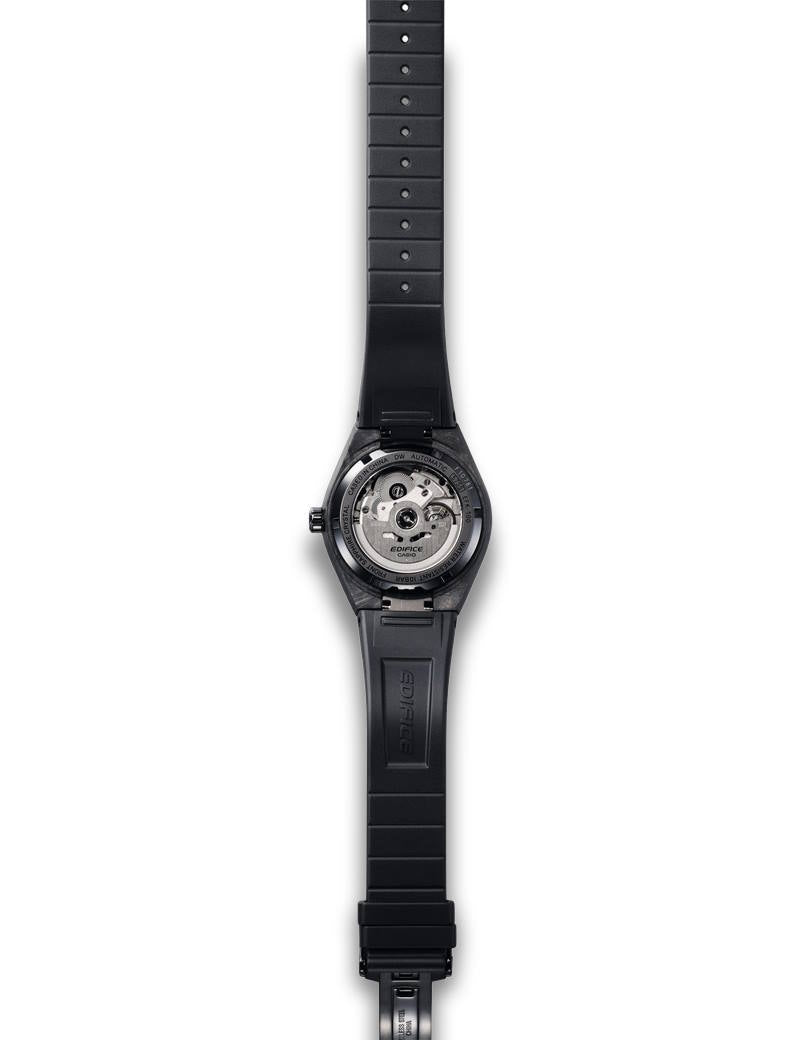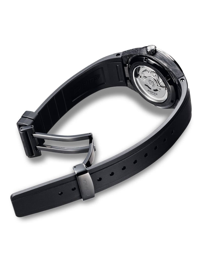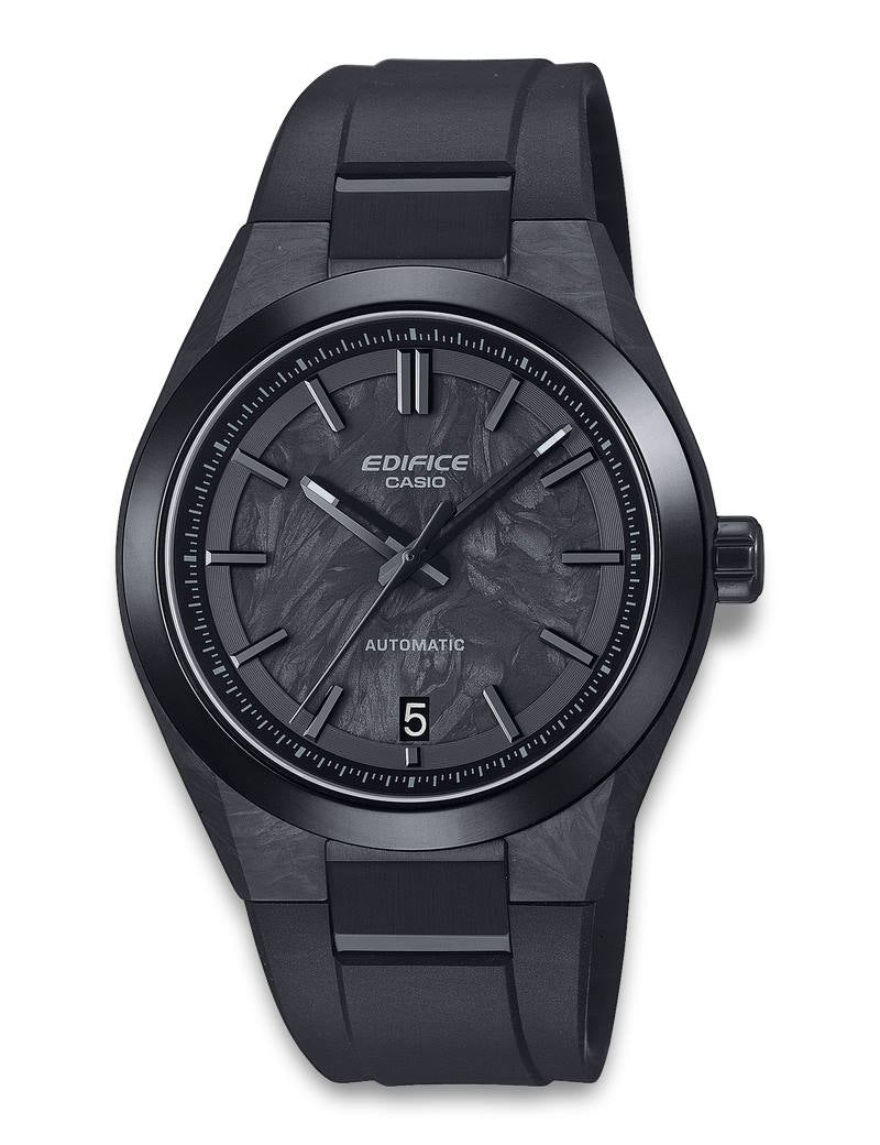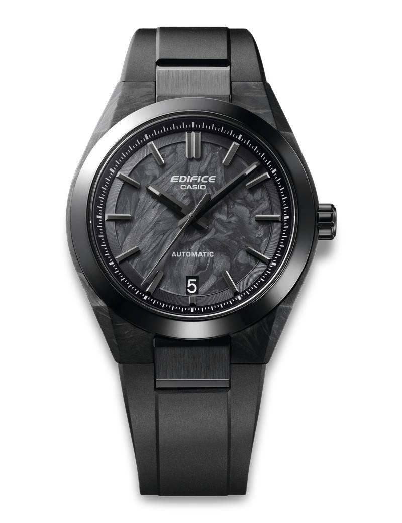Vælg EDIFICE EFK-100XPB-1AER for et ur, der kombinerer luksus, mekanisk sjæl og rå, carbon-baseret holdbarhed.