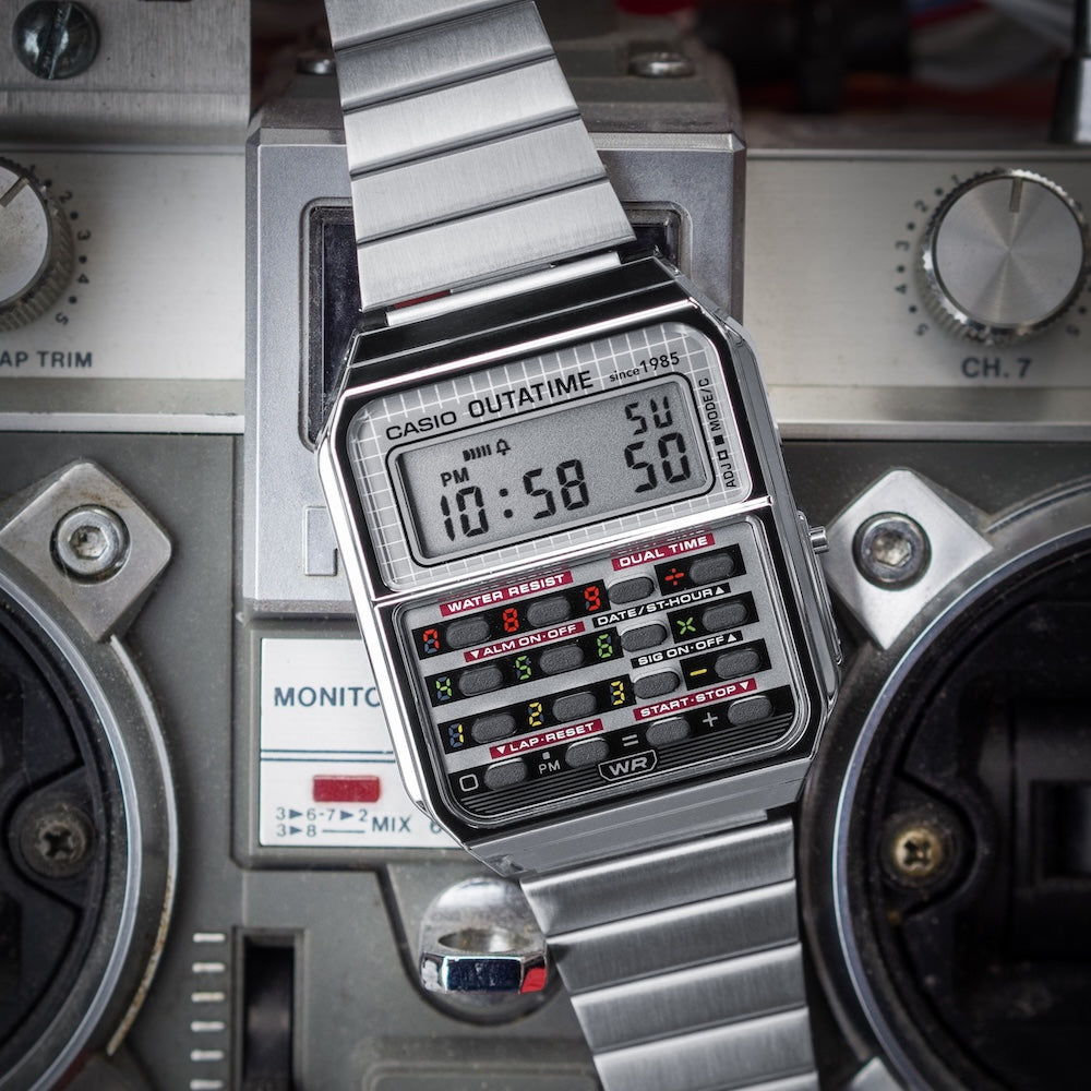For 40 år siden blev science fiction-filmen om teenageren Marty McFly, der rejste tilbage i tiden i en tidsmaskine, ikke kun et kæmpe hit – et særligt tilbehør på hans håndled blev også en kultklassiker: CASIO CA-500 regnemaskineuret. Med sine 8-cifrede beregninger og fire grundlæggende regnearter var det en teknisk innovation og absolut nyhed i 1980'erne, og det har siden været en fast del af CASIO VINTAGE-kollektionen.