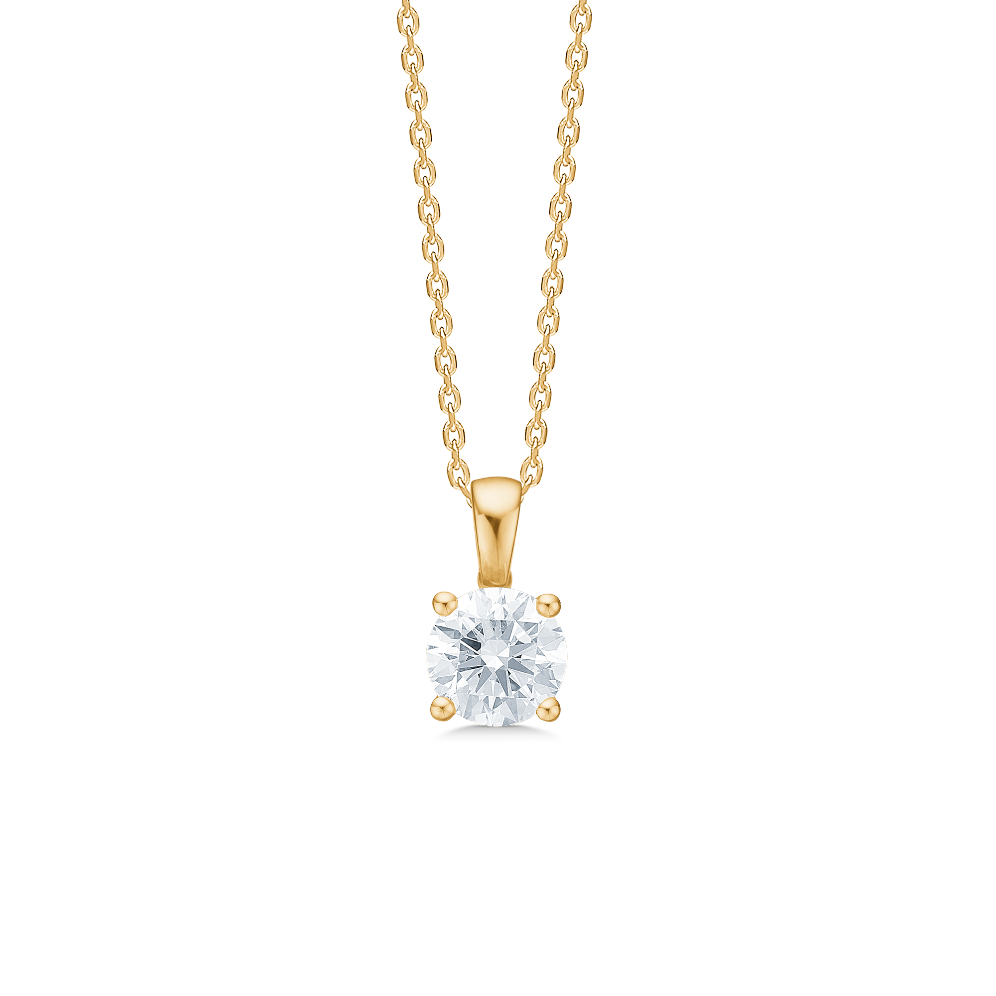 Et tidløst Solitaire Vedhæng i 14 kt. guld med en strålende brillant som centrum. Den enkle indfatning fremhæver diamantens naturlige glans og renhed, hvilket giver et elegant og sofistikeret udtryk.