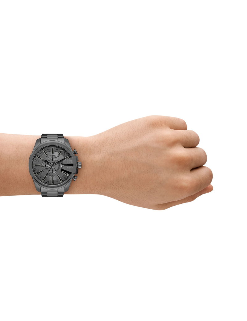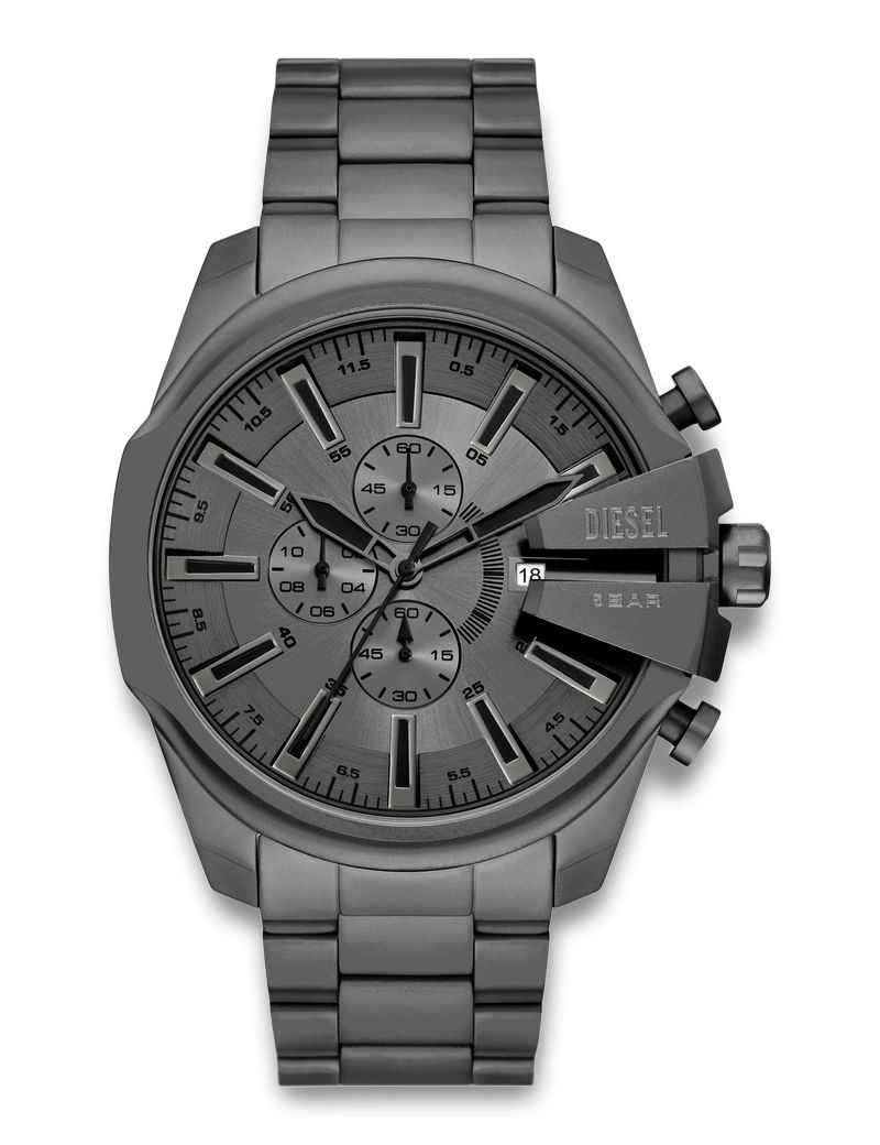 Diesel's 48 mm Mega Chief Slim kronografur er designet med et elegant, men alligevel markant udtryk. Denne model tilbyder en mere strømlinet profil uden at gå på kompromis med den velkendte Diesel-stil.