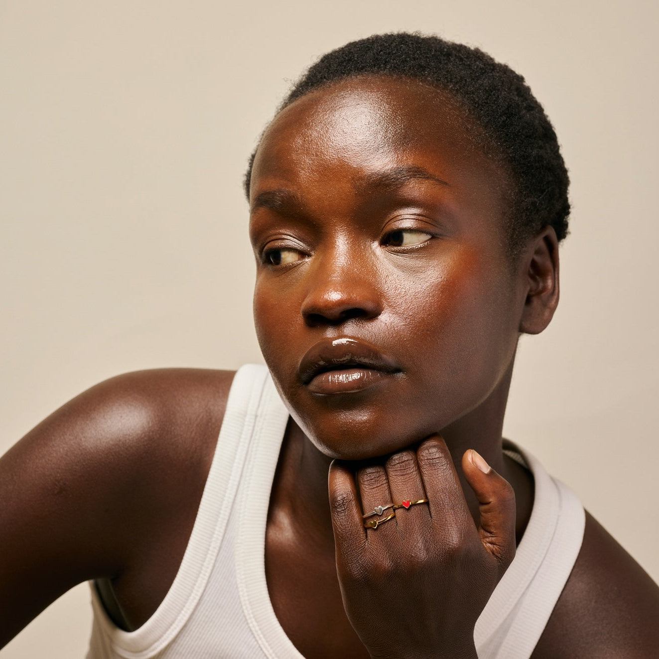 Amore Ringen i sin guld-udgave er en stilren og alsidig fortolkning af det klassiske design. Uden emalje er ringen mere nedtonet og stilren i sit udtryk, hvilket gør den nem at kombinere med alle tøjfarver og hudtoner. Ringen er fremstillet i 18K Gold Plated Recycled Sterling Silver og har en justerbar størrelse, som sikrer en perfekt pasform. Amore er et elegant hverdagssmykke, der passer til ethvert look.