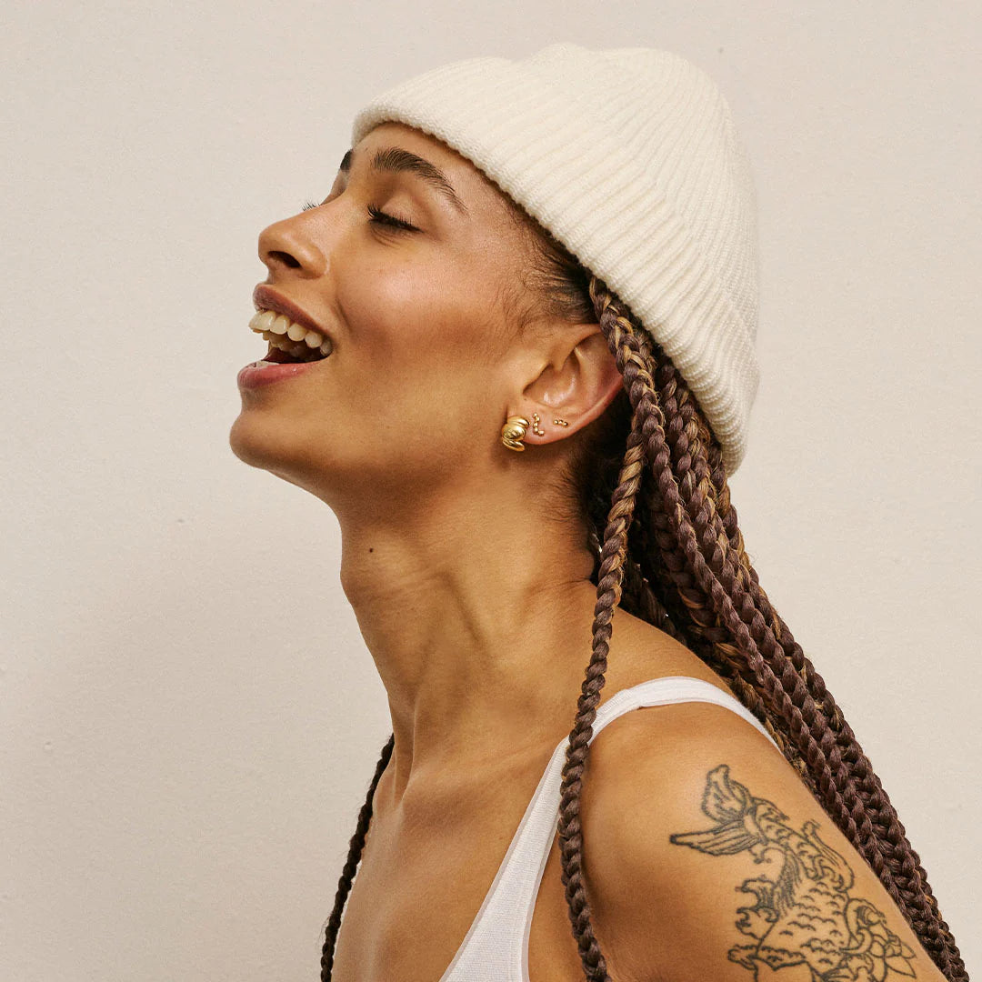 - Finish: den blankpolerede overflade fanger lyset smukt og fremhæver øreringenes kurver og det flydende design, hvilket skaber et levende spil ved hver bevægelse.