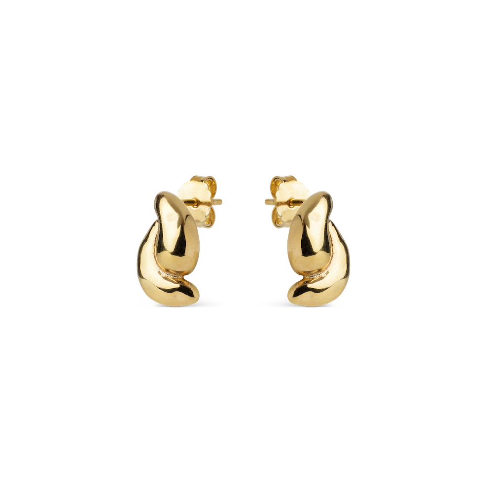 Tova Stud er en karakterfuld ørestik med et skulpturelt udtryk, hvor to svungne former spejler hinanden i en blød, kunstnerisk bevægelse. De bølgede konturer og den blanke, organiske overflade giver smykket liv og en sanselig dybde, der føles både moderne og naturlig. Tova er fremstillet i 18K Gold Plated Recycled Sterling Silver og måler 15 x10 mm. Den danner en samlet silhuet, som lægger sig elegant op ad øret og skaber et sofistikeret statement. Et smykke, der skiller sig ud med ro, karakter og kompromisløs elegance. Tova ørestikken findes også i sølv.
