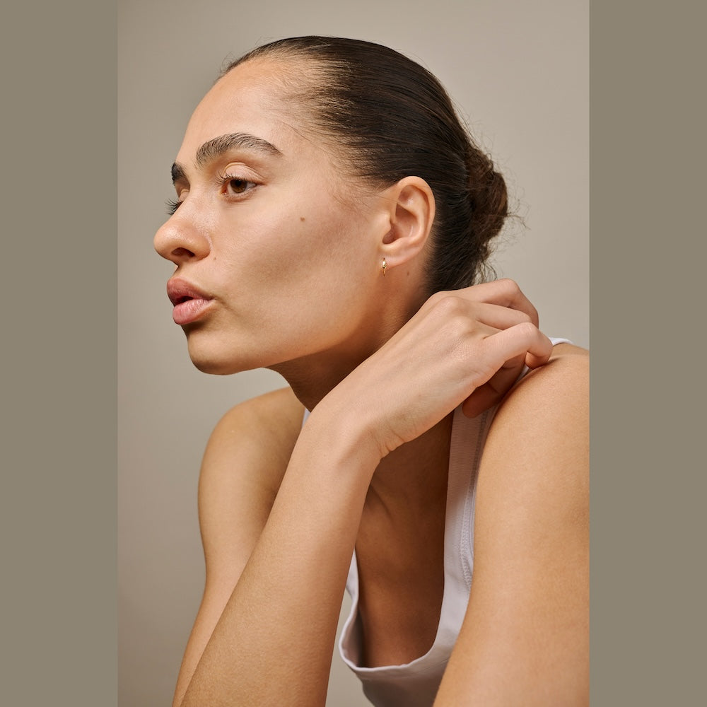 Twistie Love er en sød og enkel ørering, der tilføjer et kærligt touch til dit look. Den er udført i 18K Gold Plated Recycled Sterling Silver og har en ultra-tynd og let form (10 x 2,5 mm). Øreringens forside er prydet med tre fine, blanke hjerter, der giver et legende udtryk med en ren og moderne feel. Den lette twist-mekanisme gør den nem og sikker at tage på – du twister blot ringen til hver sin side og twister tilbage. Et enkelt twist – og lidt kærlighed.