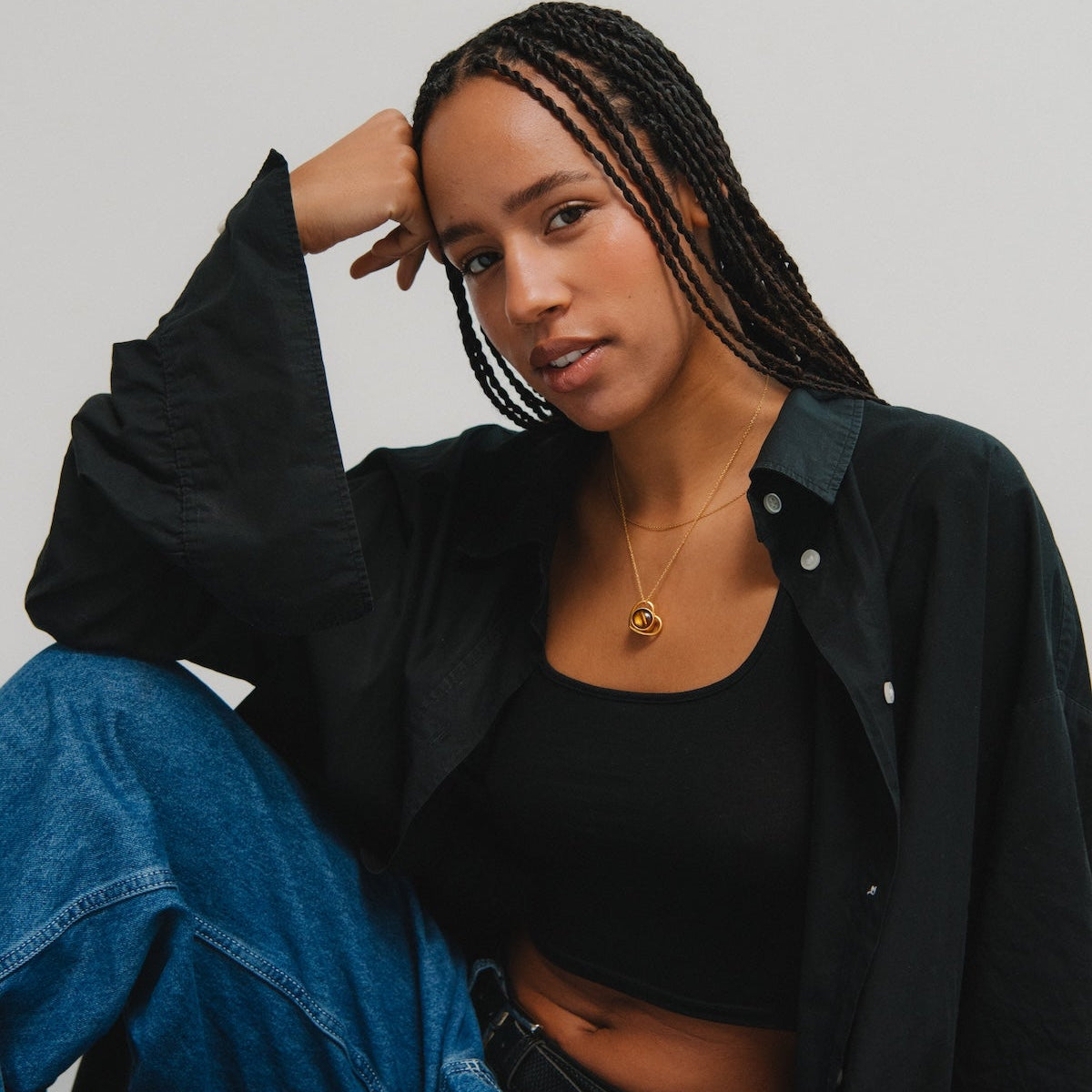 Heart Charm Med Tiger Eye - Forgyldt Stål