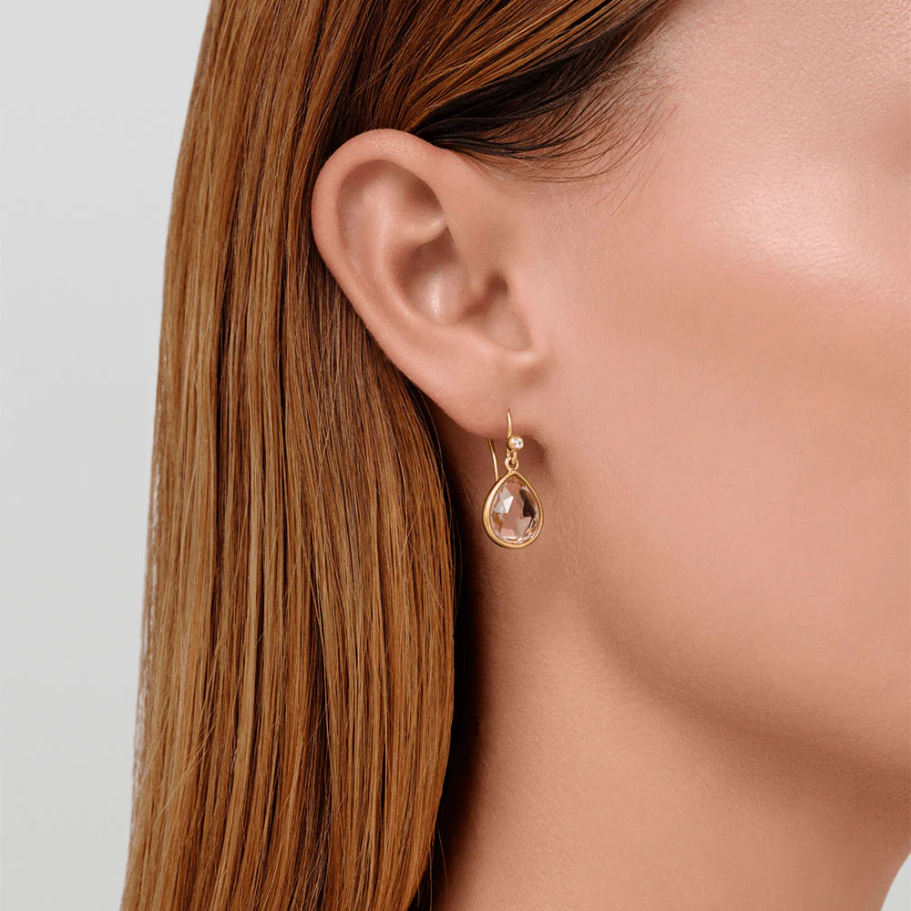 Lea øreringene er en smuk kombination af elegance og farverig finesse. De dråbeformede krystaller i en blød lyserød nuance fanger lyset smukt og tilfører et feminint udtryk, mens den lille klare sten øverst giver et ekstra strejf af eksklusivitet. Øreringene er fremstillet i 925 sterlingsølv med en satinforgyldt overflade, der giver et varmt og raffineret look.