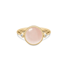 Prime-ringen Milky Rose fra Julie Sandlau forener enkelthed og glamour i perfekt balance. I centrum sidder en 10 mm cabochon-slebne krystal i en blød, mælkehvid nuance, indrammet af det karakteristiske guldbånd og flankeret af to funklende kubiske zirkonia. Ringen er udført i 925 sterling sølv og sandblæst med 22 karat guld, hvilket giver overfladen en diskret mat satinfinish. Det tidløse design fremstår både delikat og markant, så den kan bæres alene som et subtilt statement eller mikses med andre ringe for et mere personligt og detaljeret look.