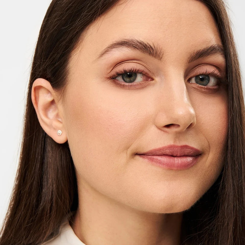 Øreringen er udført i forsølvet messing med børstet overflade og e-coating og måler 4 mm. Den er fremstillet af 50 % genanvendt materiale.