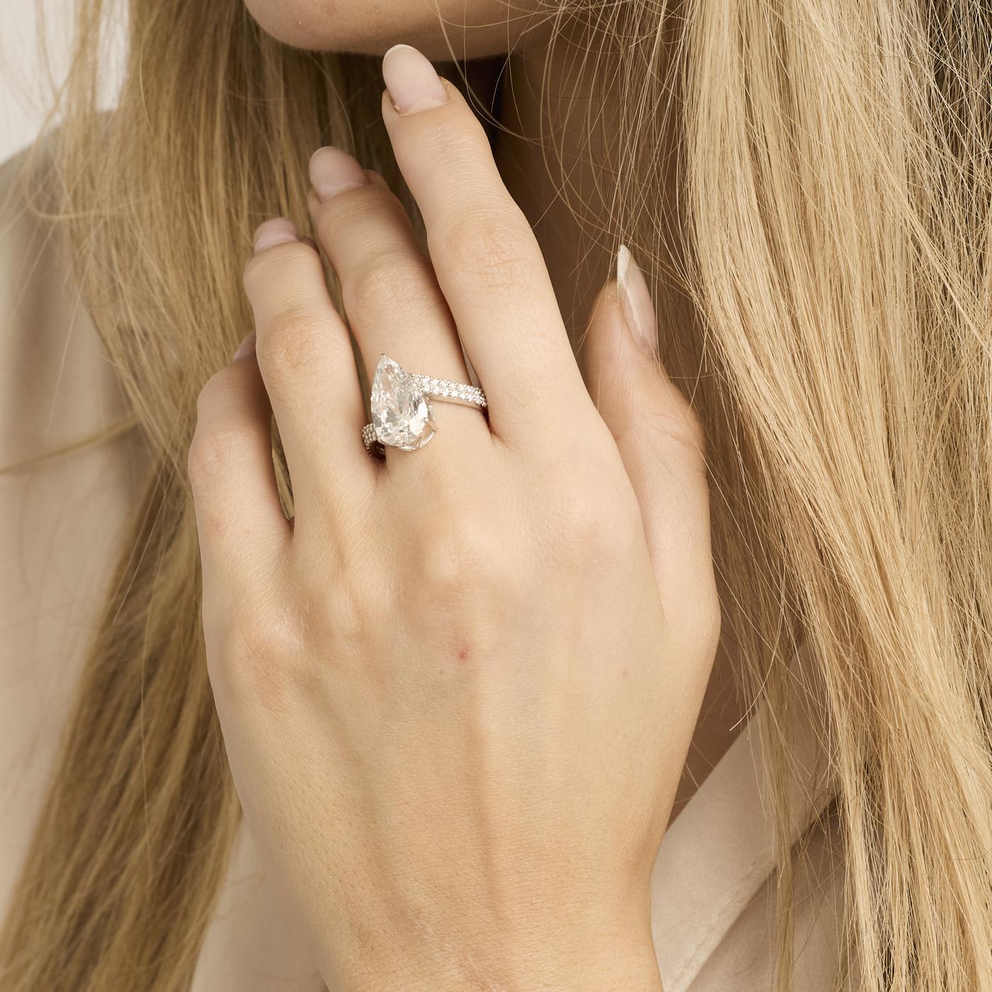 Denne klassiske Solitaire ring fra Lumavie er designet til at lade den imponerende, Lab-Grown diamant på 4,58 carat stå i centrum. Ringen er udført i elegant 14 karat hvidguld og kombinerer tidløs æstetik med Lumavies kompromisløse løfte om etik.