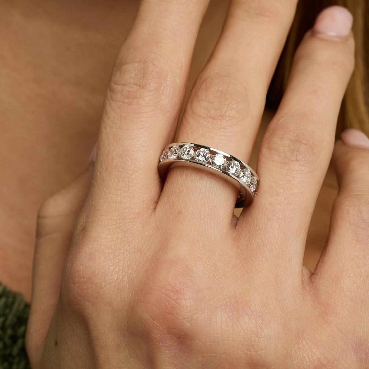 Denne betagende Eternity Ring fra Lumavie er det ultimative symbol på evig kærlighed. Ringen er smukt besat med 2,92 carat Lab-Grown diamanter i et uendeligt bånd og udført i klassisk 14 karat hvidguld. Et tidløst design, der glimter fra alle vinkler.