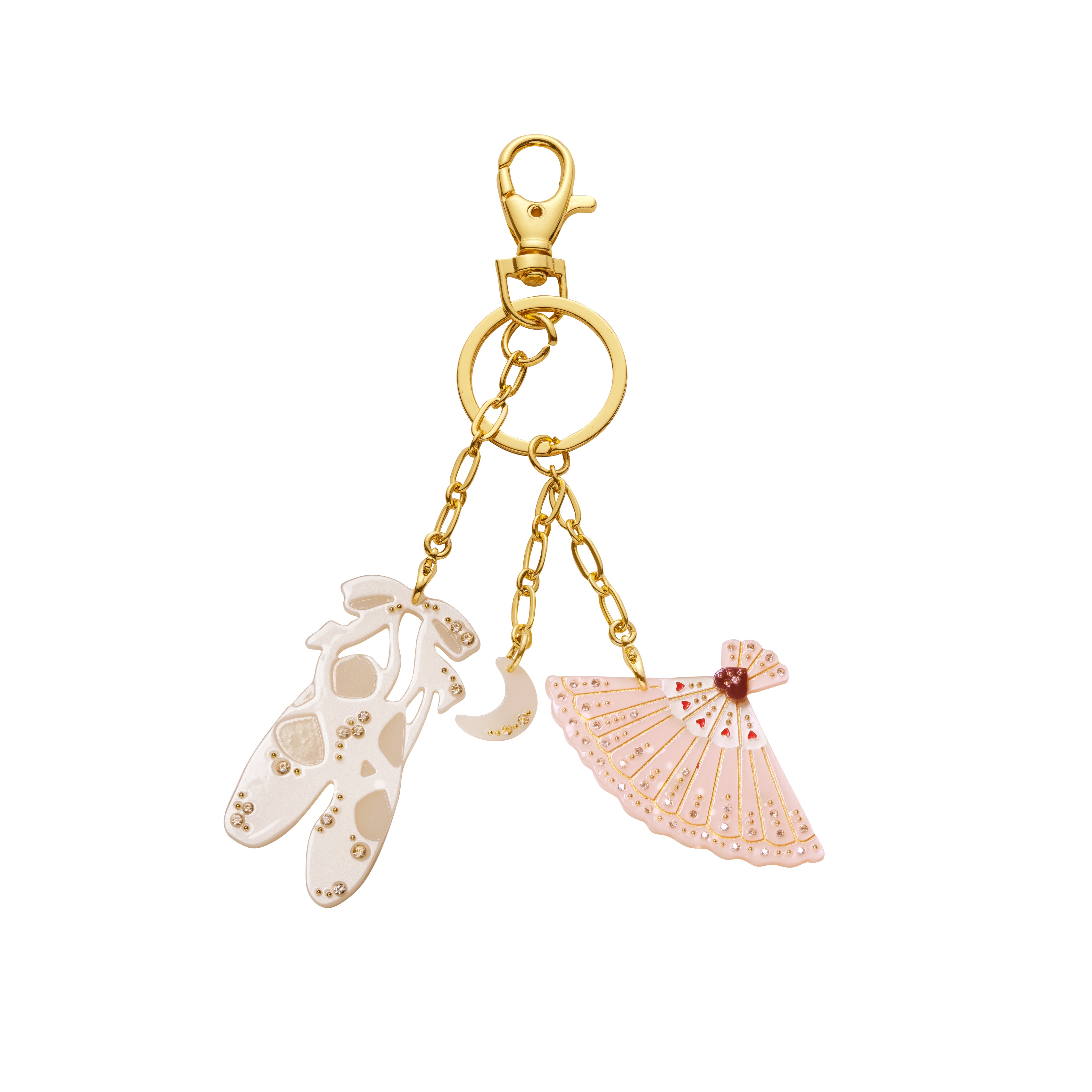 Adabel Nøglering er en legende og feminin accessory, der bringer Maanestens drømmende univers ind i hverdagen. Nøgleringen er udsmykket med delikate charms i blush-farver, heriblandt et par balletsko og en vifte, som giver et poetisk udtryk fyldt med eventyr og elegance. Den er perfekt til at pifte dit nøglebundt eller din taske op med et unikt og personligt touch.
