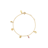 Addison Armbåndet fra Maanesten er et poetisk smykke, der hylder livets balance og dualitet. De fine vedhæng – solen, månen og dugdråber – symboliserer styrken i både lys og mørke, dag og nat. Smykket er skabt i genanvendt sterling sølv (925) og belagt med 18 karat guld, hvilket giver det en varm, gylden glød. De smukke detaljer med pink turmalin, citrin og champagnefarvede zirkoner tilføjer et farverigt og drømmende udtryk.