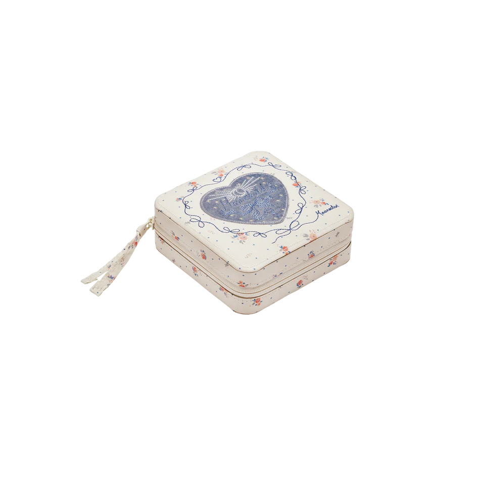 Beskyt dine skatte med det smukke Amelia Smykkeskrin fra Maanesten. Dette delikate smykkeskrin er designet til at være et tidløst element på dit toiletbord, med et meningsfuldt hjertebroderi. Skrinet kombinerer æstetik med ansvarlige materialer, idet det indeholder en genanvendt YKK lynlås.