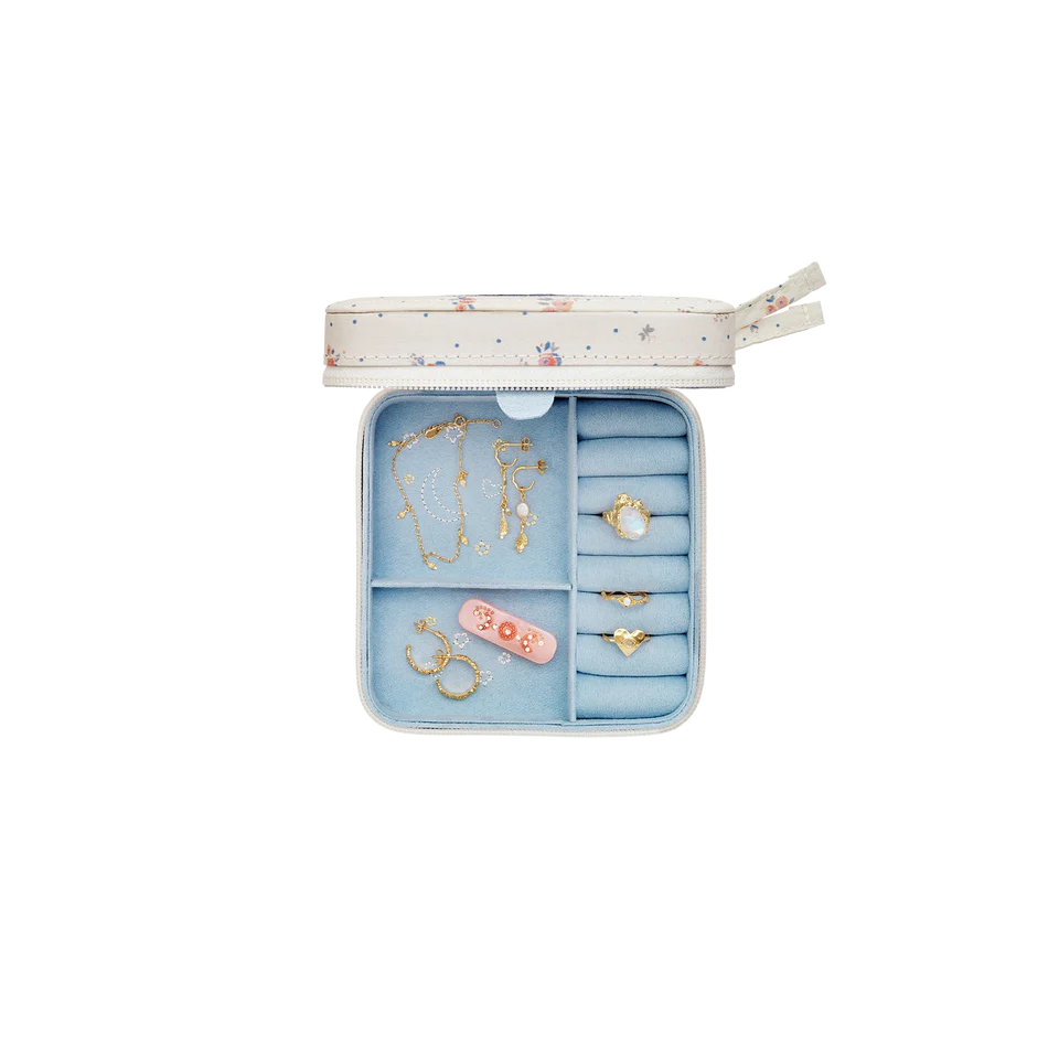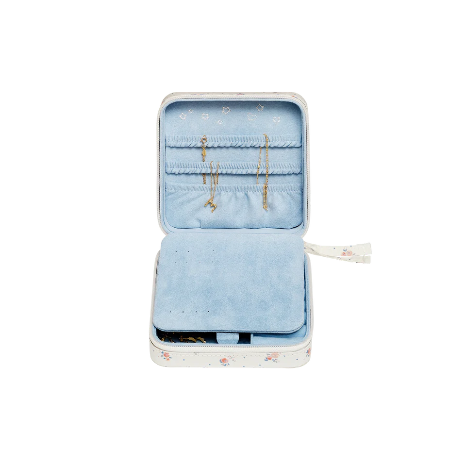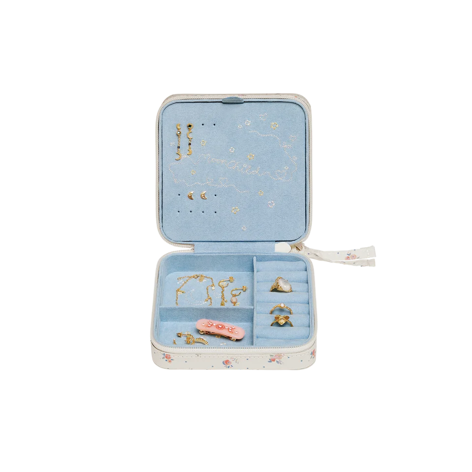 Amelia Smykkeskrin er delikat og tidløst i sit udtryk og er designet til at rumme og beskytte alle dine favoritsmykker smukt. Skrinet har et fint broderi omkring et centrerede hjerte, hvilket gør det lige så meningsfuldt som de skatte, det gemmer. Det udvendige materiale er en blanding af bomuld og polyester, foret er 100% polyester, og lynlåsen er en genanvendt YKK Nautilon lynlås. Et perfekt sted til opbevaring af smykker fra Maanesten.