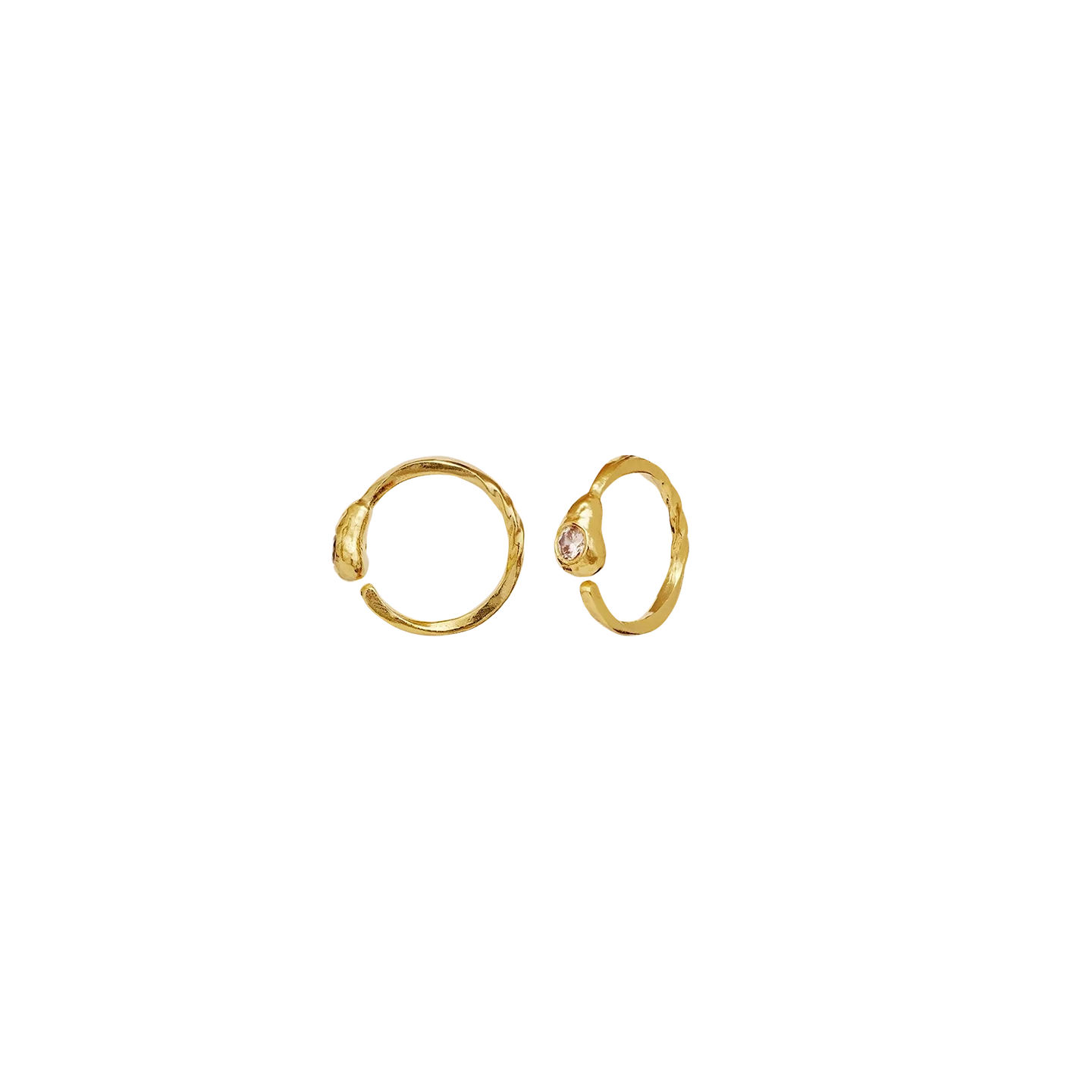 Beth øreringene fra Maanesten forener enkel elegance med et strejf af glitrende luksus. De små creoler er skabt i genanvendt sterling sølv (925) og forgyldt med 18 karat guld, hvilket giver dem et varmt og raffineret udtryk. I midten sidder en funklende champagnefarvet zirkon, der fanger lyset smukt og tilføjer en diskret glans til dit look.