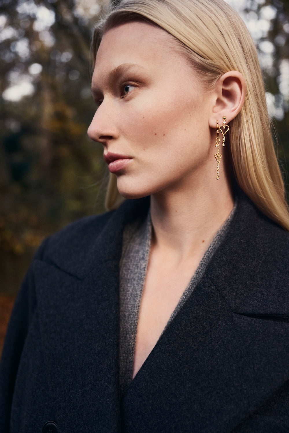Eliori Twinkle Øreringe fra Maanesten i forgyldt sterlingsølv er den perfekte fusion af nordisk minimalisme og blændende skønhed. De fine, funklende hvide zirkonia sten er elegant indfattet i det varme guld, hvilket skaber et eksklusivt og luksuriøst udtryk, der smukt indrammer dit ansigt. Disse øreringe er et tidløst statement, der tilfører en subtil, men uimodståelig gnist til enhver anledning.