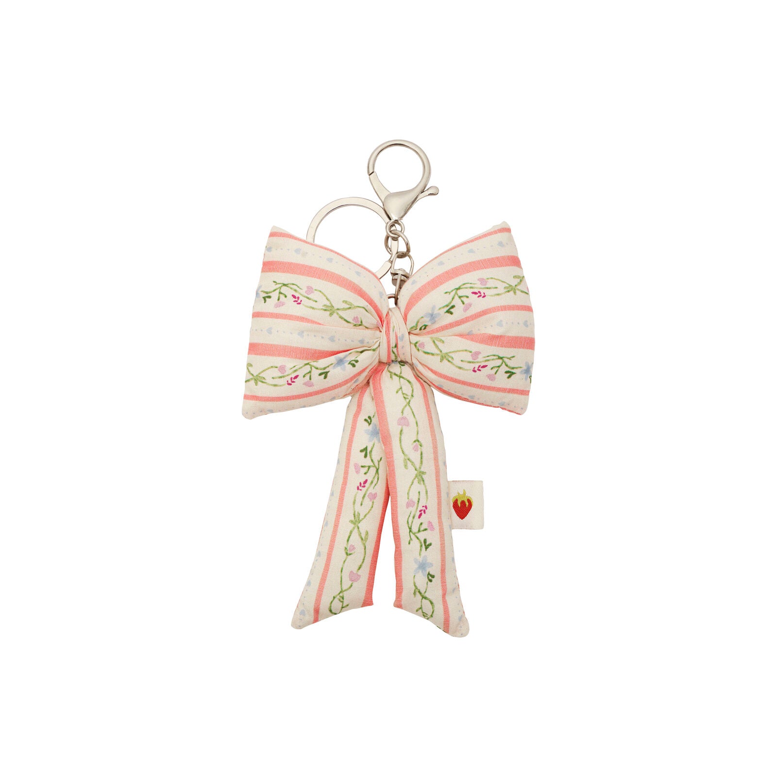 Maanesten Fabric Bow Nøglering Summer Stripes Peach: et charmerende sløjfe design, der tilføjer et legende touch til din stil.