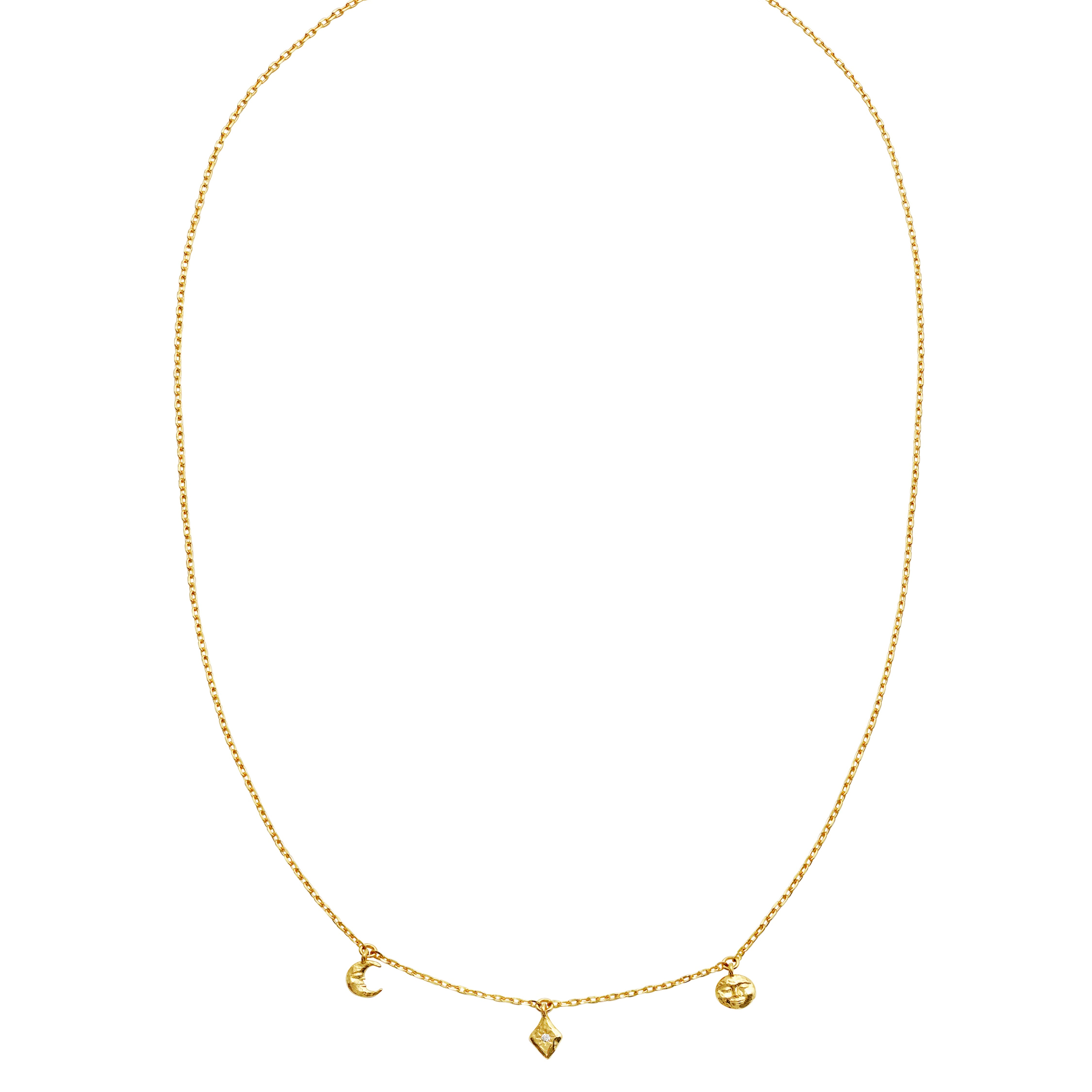 Smykket er lavet i forgyldt sterlingsølv, og vi anbefaler, at du undgår kontakt med vand for at bevare forgyldningens glans.