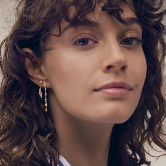 Smykket er lavet i forgyldt sterlingsølv, og vi anbefaler, at du undgår kontakt med vand for at bevare forgyldningens glans.