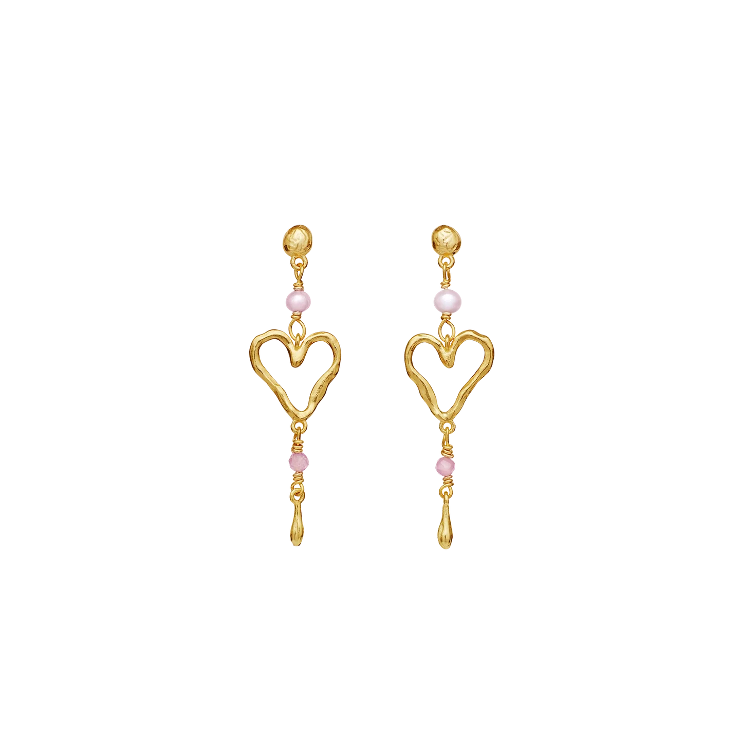 Sabi Petit øreringene fra Maanesten er en hyldest til hjertevarm passion og blide energier. De delikate dråber af pink ferskvandsperler og turmalin bringer balance og renhed ind i smykkets unikke udtryk.