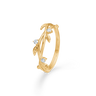 Ringen er fremstillet af 14 karat guld med en poleret overflade for en blød glød. En brillantsleben diamant på 0.10 ct. Wesselton SI er placeret i en præcis grabbefatning for at sikre optimal lysadgang og maksimal udstråling. Den åbne konstruktion lader hudens tone træde ind i designet og skabe en diskret kontrast. Ringen er et bevis på den omhyggelige håndværkskvalitet fra Gold Label-kollektionen.