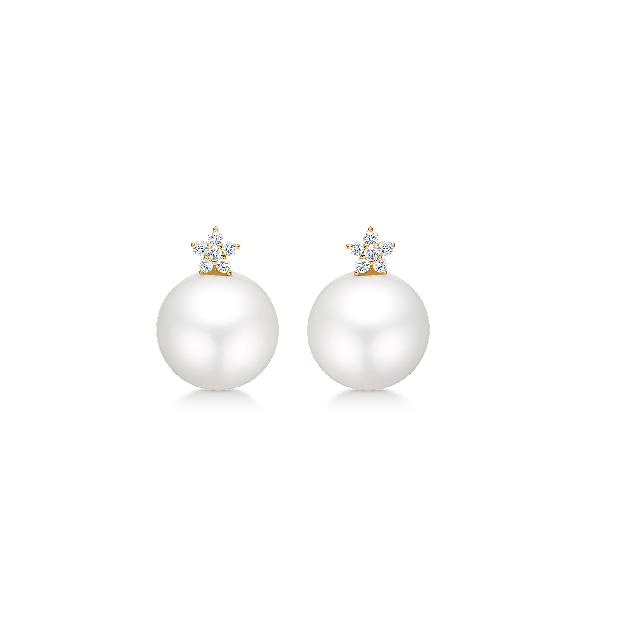 Øreringene er udført i 14 karat guld og prydet med en rund kulturperle. Over perlen er seks brillantslebne diamanter på i alt 0.14 ct. W.SI samlet i et stjerneformet cluster, der fungerer som et klart og balanceret fokuspunkt. Det klare diamantcluster spejler nattehimlens præcise punktlys, mens perlens glød tilfører ro og dybde. Øreringene er et bevis på Gold Label-kvalitet og ægte guldsmedehåndværk.
