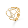 Hver diamant er sat med stor omhu, så de fremhæver de flydende, sammenflettede linjer og skaber et spil af lys, der er lige så levende som dig.