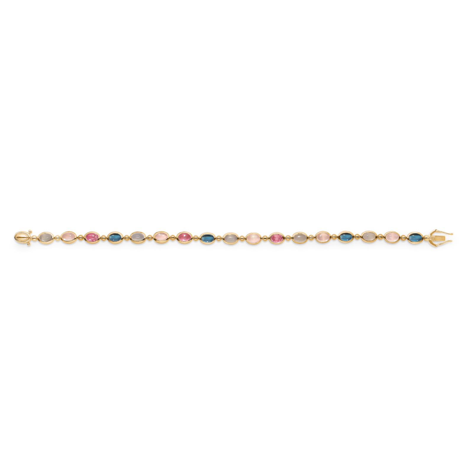 Smykket er udført i 14 karat guld og tåler kontakt med vand i daglig brug. For optimal holdbarhed anbefaler vi dog, at det tages af ved fysisk aktivitet.