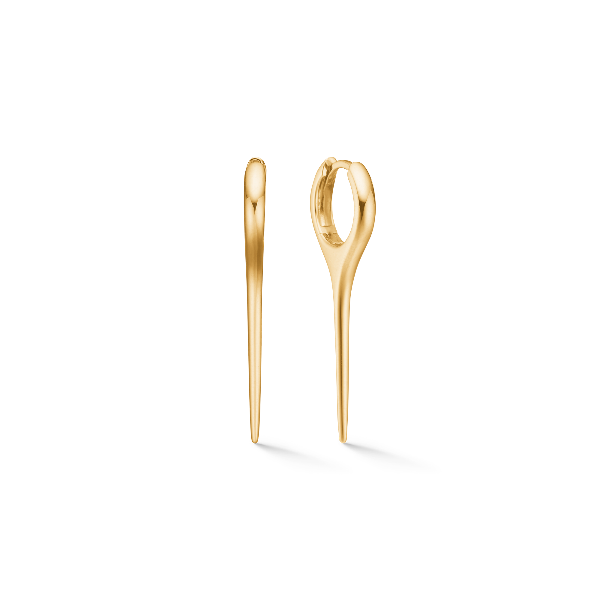 Disse Icicle-øreringe er et elegant og skulpturelt smykke, der er inspireret af vinterens istapper og synet af smeltende vand. Designer Mads Ziegler har omsat denne inspiration til flydende, organiske, dråbeformede kurver i guld.