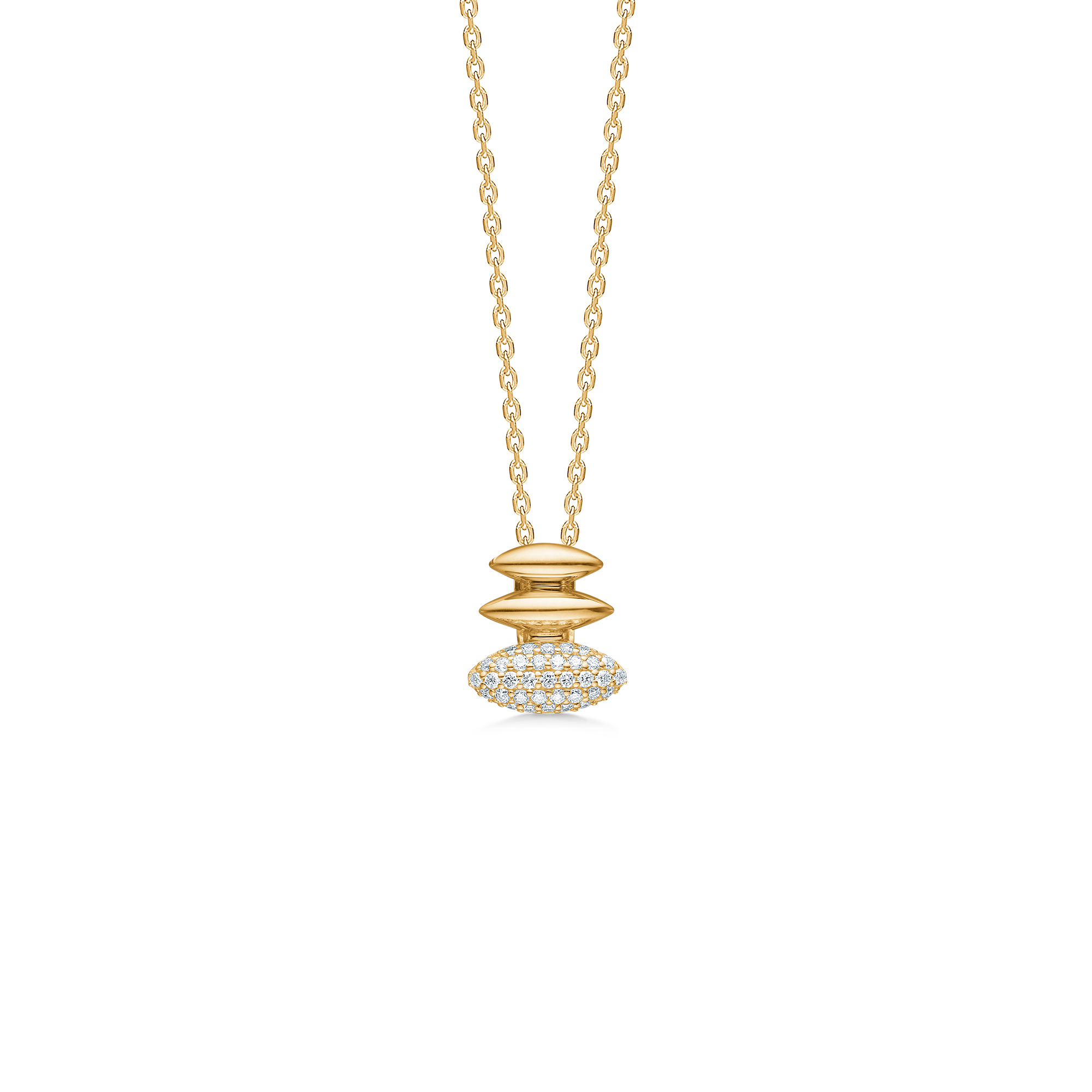 Bær Orielle-vedhænget alene på en kort ankerkæde for et stilrent statement, eller fuldend udtrykket med matchende guldringe med diamanter. Det er en elegant tilføjelse til både skjorten i hverdagen og aftenkjolen.