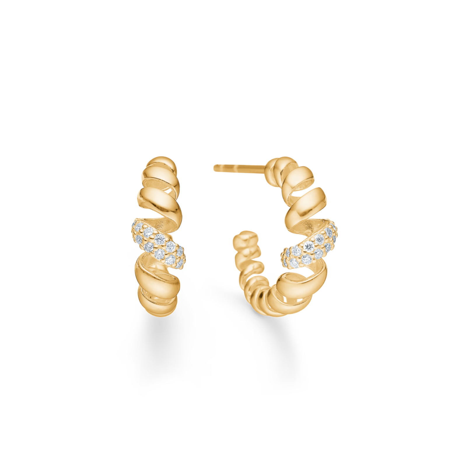 Udforsk det tidløse udtryk i Swirl w. Diamonds Øreringe fra Mads Z Gold Label.