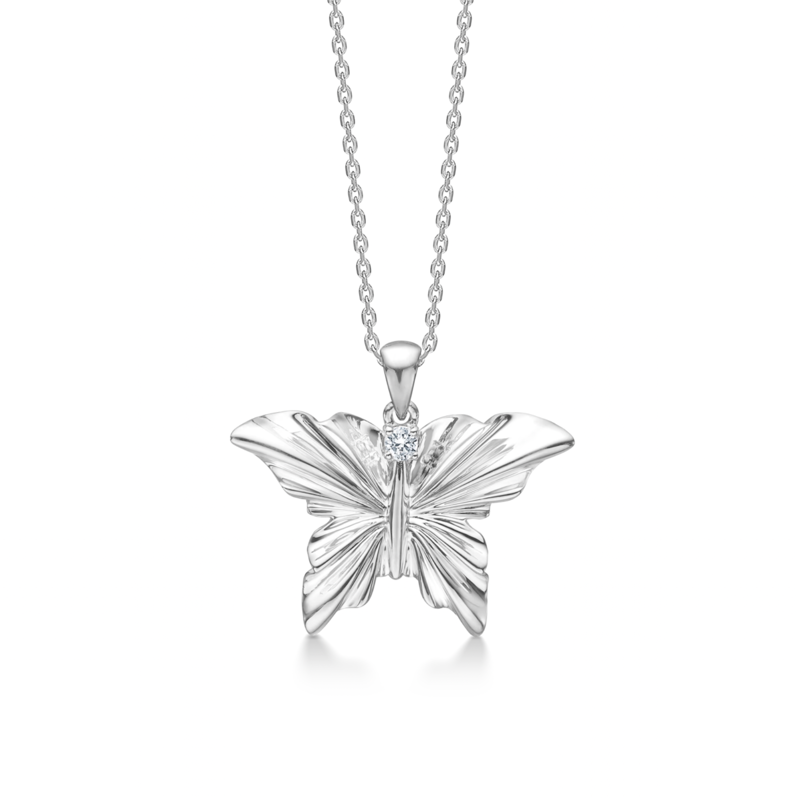 Monarch-halskæden fra Mads Z Silver Label er et smykke fyldt med symbolik og ynde. Inspireret af den elegante monarch-sommerfugl er smykket en hyldest til transformation, frihed og den indre styrke, som hver kvinde bærer i sig. Det delikate vedhæng i sølv måler 16 mm og prydes af en funklende hvid topas, der tilføjer et subtilt og sofistikeret udtryk.