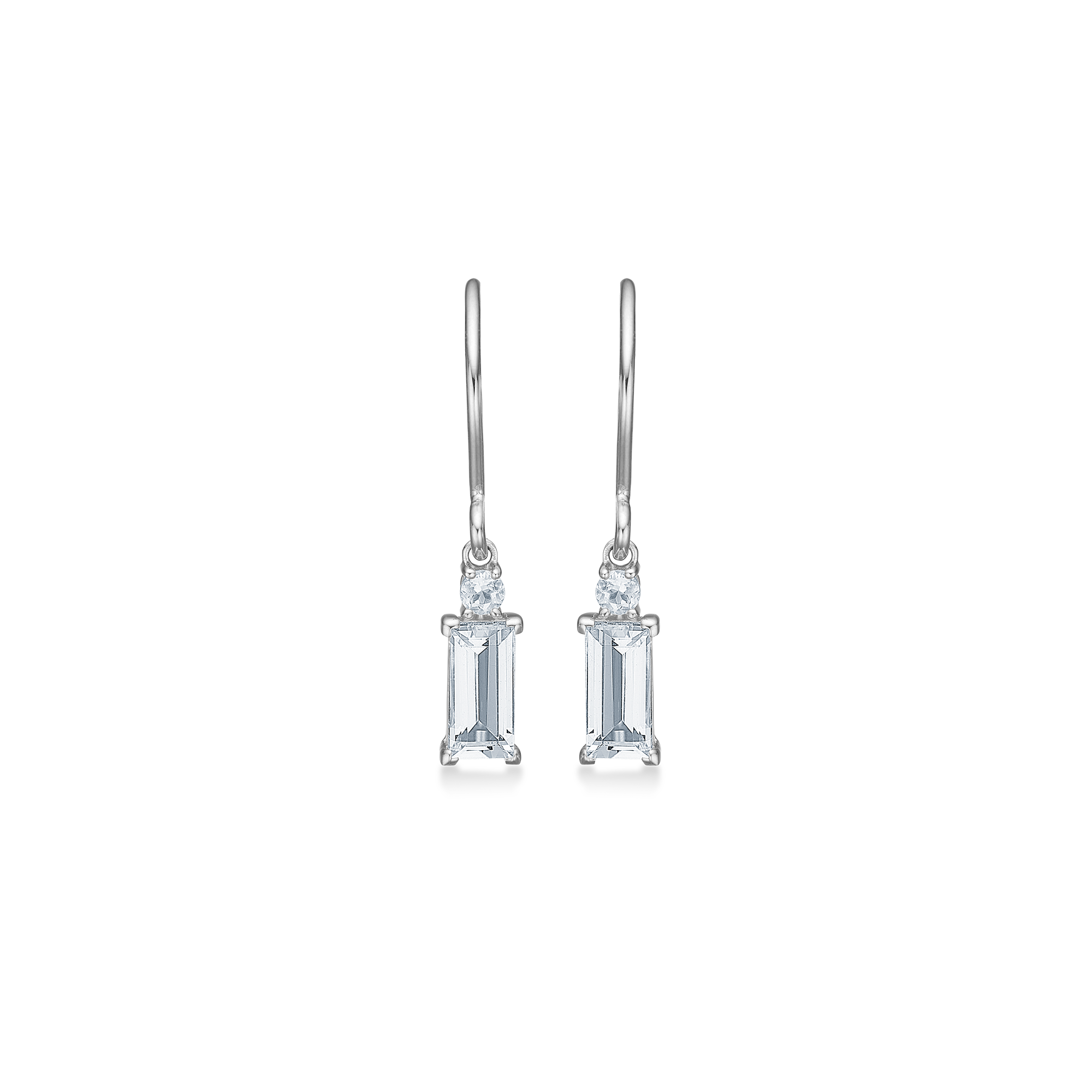 Øreringene er udført i rhodineret sterlingsølv med en minimalistisk bøjle, der elegant indrammer en facetsleben hvid topas. Topaserne er grabbefattet og spejler nattens klare lys. Designet forener raffineret håndværk med en arkitektonisk tilgang, hvilket skaber et moderne udtryk, der afspejler balancen mellem orden og personlighed.