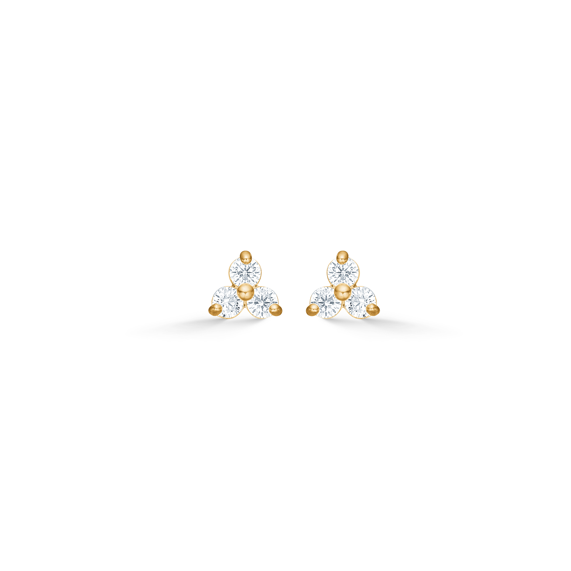 Øreringene er fremstillet af poleret 8 karat guld, der giver en markant glød og styrke. De er prydet med tre facetslebne zirkonia, der er arrangeret i en symmetrisk, harmonisk trekant (måler 6 mm). Stenenes grabbefatning er let rundet, hvilket sikrer, at lyset bevæger sig frit mellem stenen og guldet. Designet udtrykker ro, balance og bringer ægte luksus ind i hverdagen.