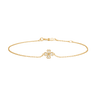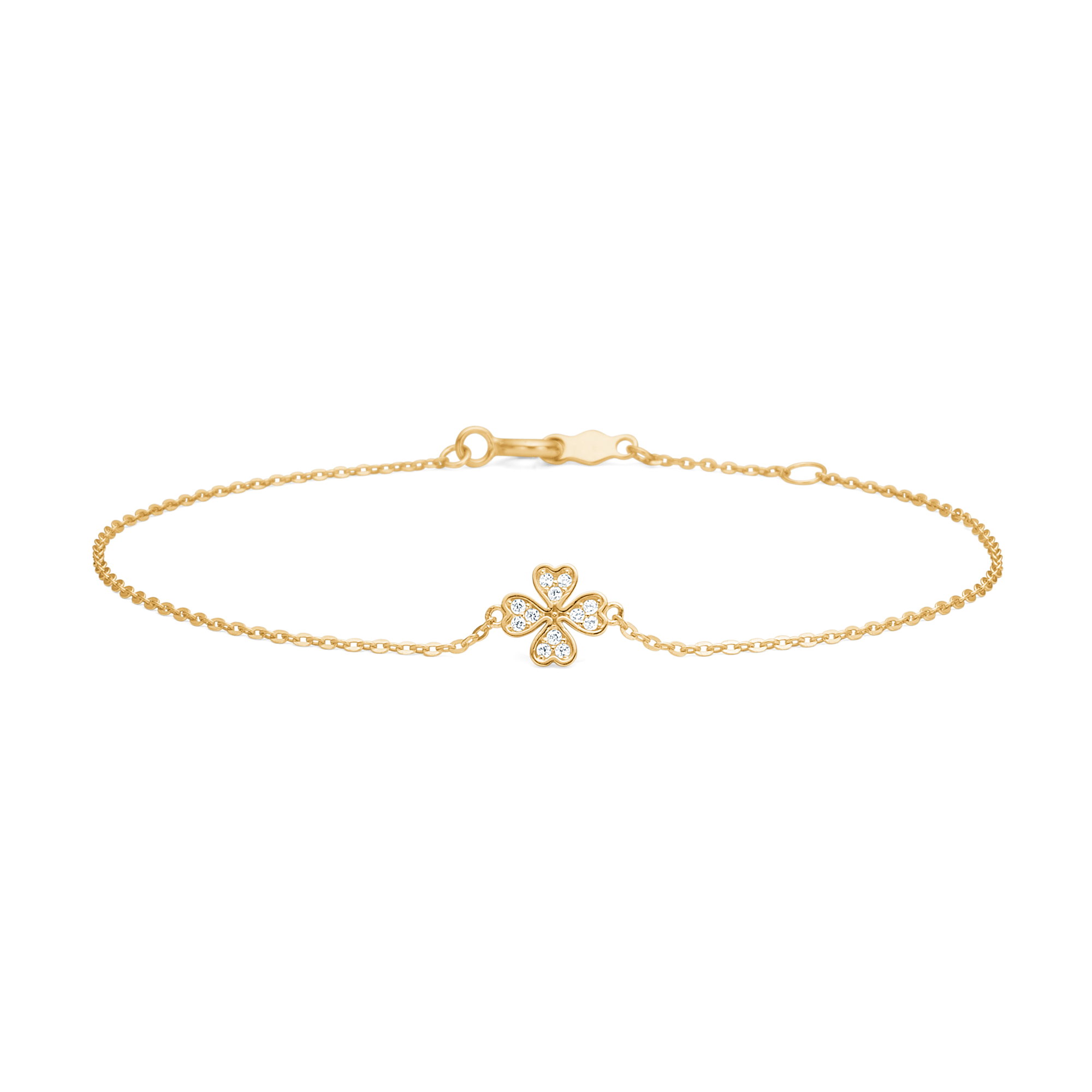 Armbåndet er udført i 8 karat guld, hvor den 7 mm kløverform er elegant udformet med en fin milgrain-kant, der tilføjer et diskret vintagepræg. De pavé-satte facetslebne zirkonia fanger og reflekterer lyset smukt og understreger tanken om indre styrke.
