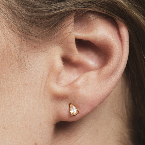Fremstillet i rustfrit stål med 18K guldbelægning (PVD) er Belle Champagne Ørestikker både slidstærke og vandafvisende, så de bevarer farve og glans over tid. Måler 6 x 4 mm.
