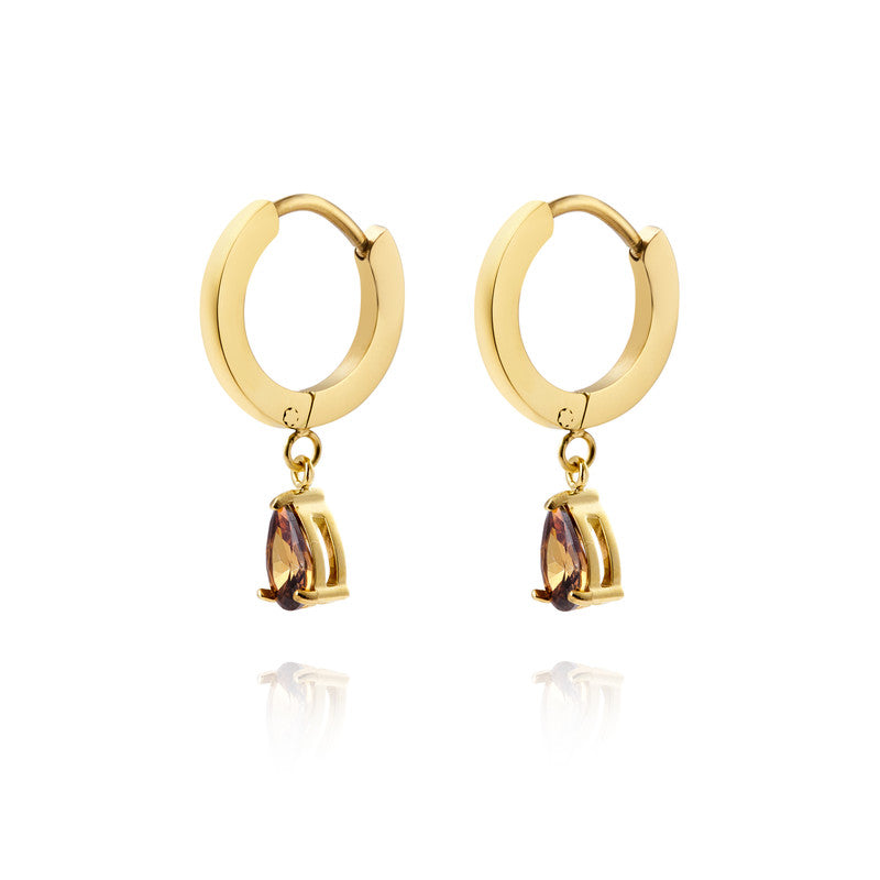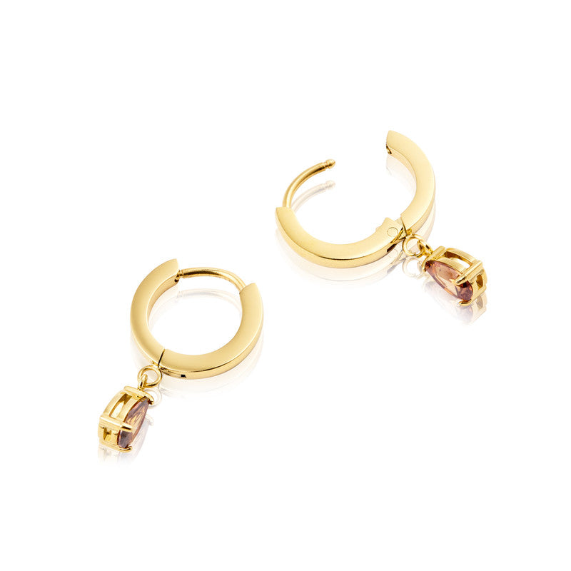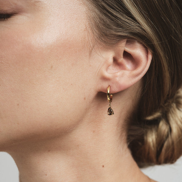 Belle Coffee Hoops i forgyldt stål fra Mockberg er en moderne og stilfuld fortolkning af de klassiske hoops. De smukke, dråbeformede kaffefarvede cubic zirconia-sten tilfører varme og dybde til designet, mens den guldfarvede ramme giver et eksklusivt og tidløst udtryk. Perfekte til både hverdagsbrug og særlige lejligheder, hvor du ønsker et smykke, der kombinerer elegance med et unikt farvespil.