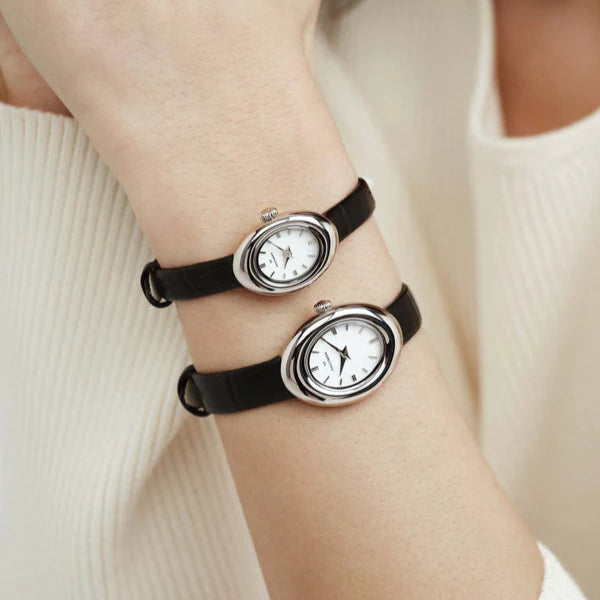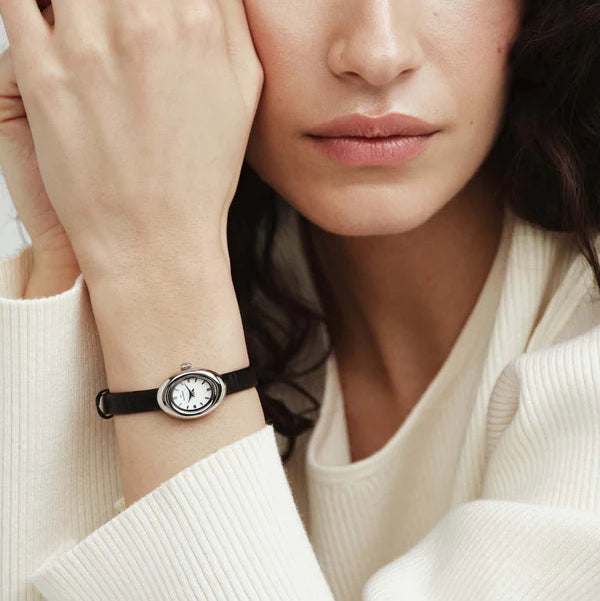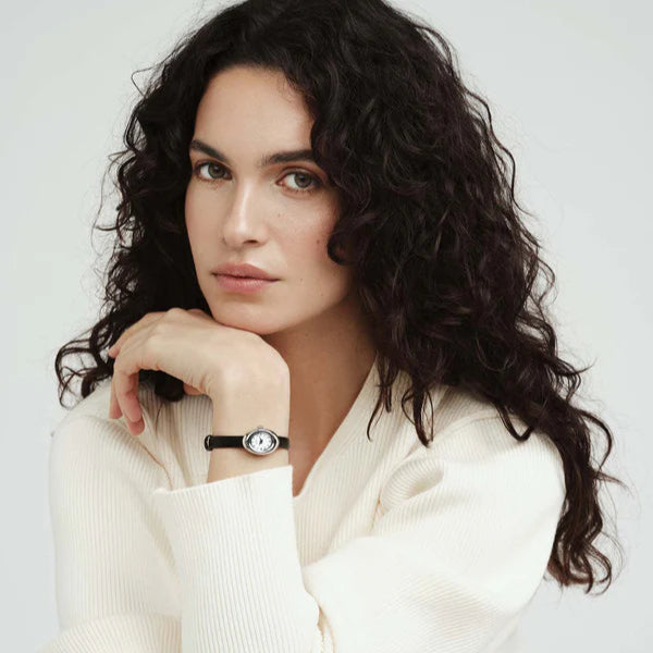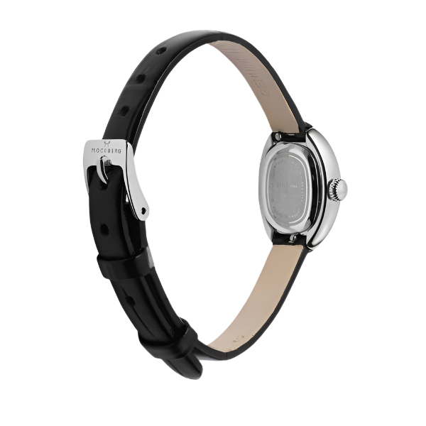 Mockberg Belle Oval Petite Leather Steel MB1413 kombinerer det klassiske og det moderne i et feminint og raffineret armbåndsur. Den blødt afrundede, ovale urkasse i rustfrit stål omkranser en krystalklar, hvid urskive, beskyttet af ridse- og stødresistent mineralglas, mens det præcise Japan Watch Movement VJ20 sørger for pålidelig og nøjagtig tidtagning. Med en elegant diameter på 18,5 × 26 mm og en smal sort læderrem med ståldetaljer, der er 8 mm bred og 200 mm lang, ligger uret let og behageligt på håndleddet og skaber et diskret, men markant look. Takket være 3 ATM vandafvisning kan du trygt bære Belle Oval Petite Leather Steel MB1413 til både hverdagens gøremål og aftenens festligheder, hvor det ovale design og den klassiske læderrem understreger din personlige stil med et strejf af tidløs elegance.