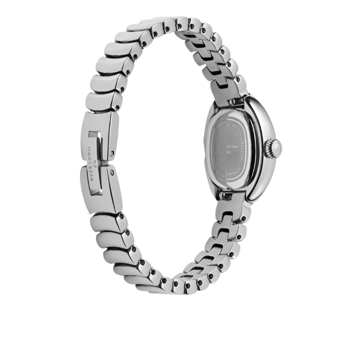 Mockberg Belle Oval Petite Steel MB1417 forener tidløs elegance og feminin lethed i ét enkelt ur. Den blødt afrundede, ovale urkasse i højpoleret rustfrit stål indrammer en ren, hvid skive, beskyttet af ridse- og stødresistent mineralglas – et match made in heaven med det præcise Japan Watch Movement VJ20, som sikrer pålidelig gengivelse af tiden. Med mål på 18,5 × 26 mm og en slank lænke i rustfrit stål på 8 mm i bredden og 200 mm i længden føles Belle Oval Petite let og behagelig på håndleddet, mens vandafvisningen på 3 ATM tåler hverdagens små stænk. Bær uret til både hverdag og fest, og oplev hvordan det ovale design fuldender dit look med subtil luksus.