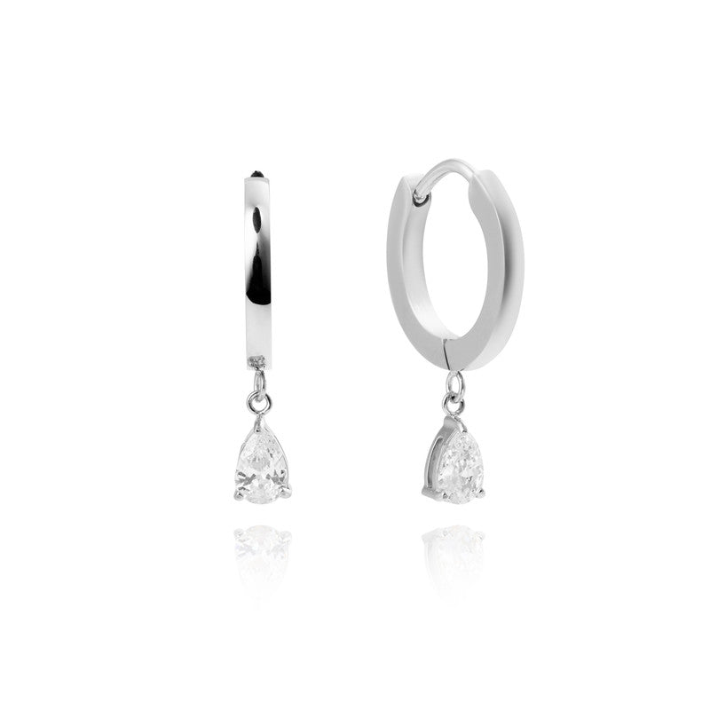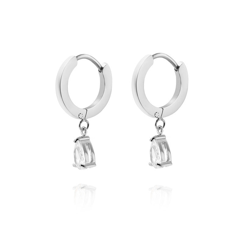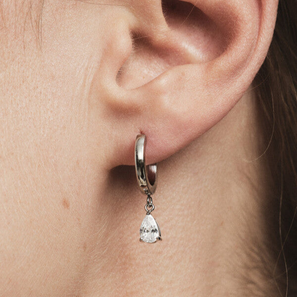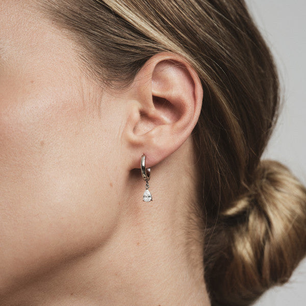Belle White Hoops i stål fra Mockberg er en moderne og elegant fortolkning af de klassiske hoops. De smukke, hvide dråbeformede cubic zirconia-sten er indfattet i en sølvfarvet ramme, der tilfører et feminint og tidløst udtryk. Deres alsidige design gør dem perfekte til både hverdagsbrug og festlige lejligheder, hvor de tilføjer et subtilt, men iøjnefaldende glimt.