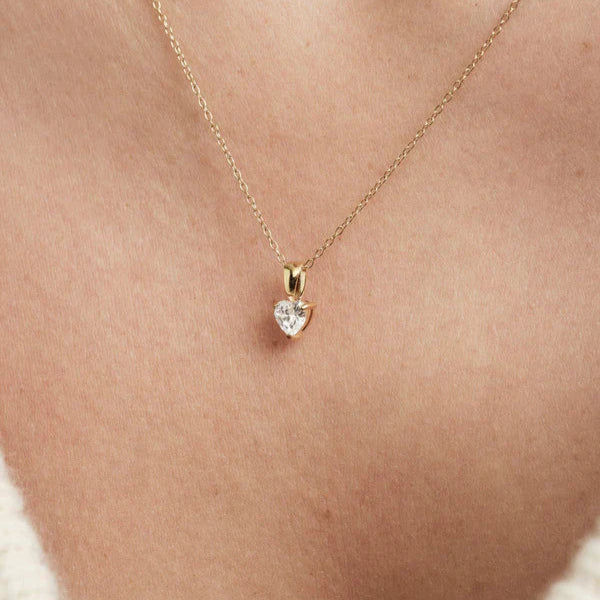 Bonne White Halskæde i forgyldt stål fra Mockberg er et feminint og tidløst smykke, der kombinerer enkel elegance med et romantisk præg. Den fine, hjerteformede hvide cubic zirconia-sten hænger smukt fra en tynd kæde i varm guldfarve, hvilket giver et stilrent og sofistikeret udtryk. Halskæden er alsidig og kan bæres alene for et klassisk look eller kombineres med andre kæder for et mere personligt udtryk.