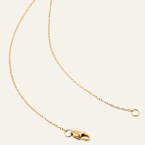Fremstillet i rustfrit stål med 18K guldfarvet PVD-belægning er den både slidstærk og vandafvisende, så den bevarer sin farve og glans over tid. Måler 45 cm med et forlængerstykke på 5 cm.