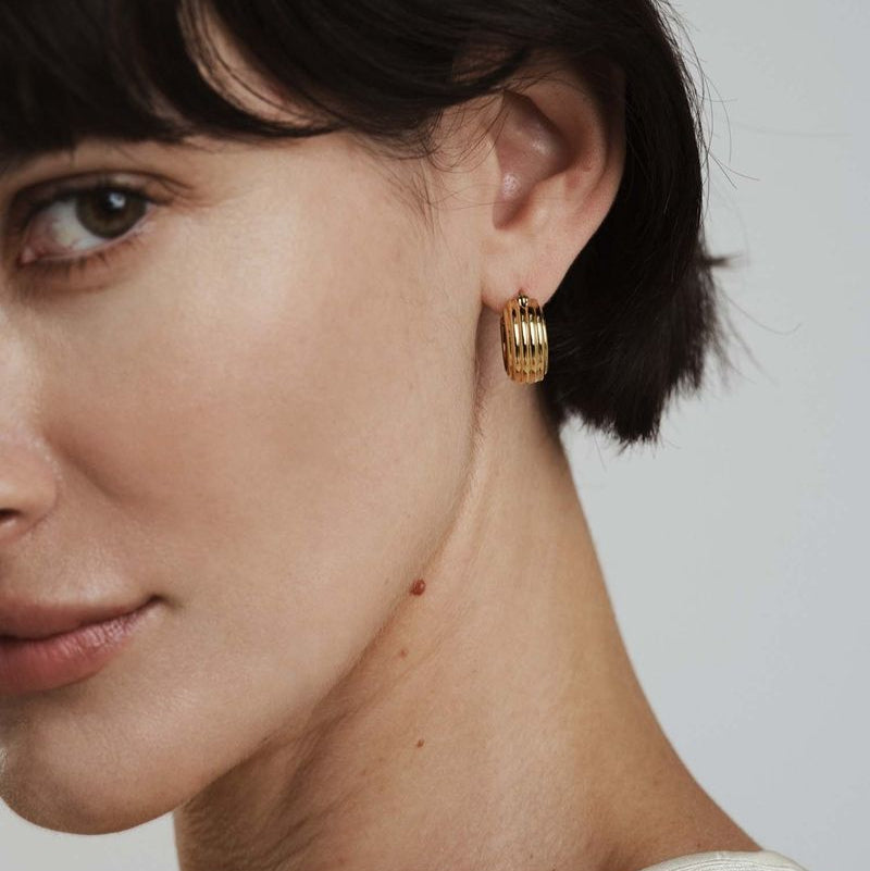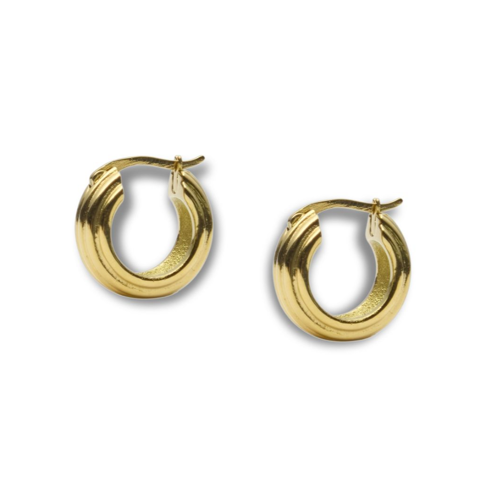 Edge Ribbed Small Gold Hoops - Forgyldt Stål