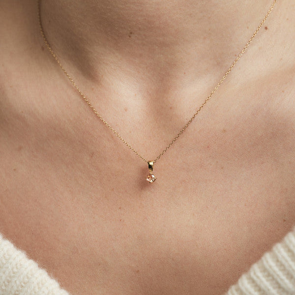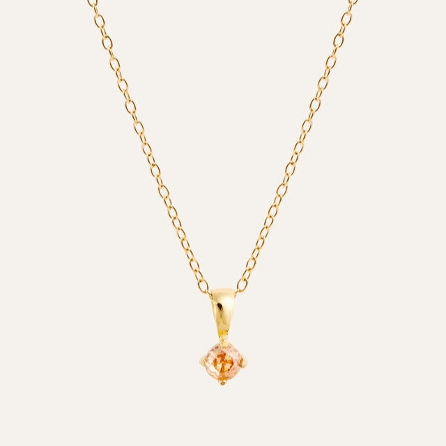 Jolie Champagne Halskæde i forgyldt stål kombinerer minimalistisk design med et strejf af varme. Den fine, runde champagnefarvede zirkoniasten sidder elegant på en tynd kæde og tilfører et sofistikeret udtryk, der passer til enhver anledning. Halskæden er fremstillet i rustfrit stål med 18K guldfarvet PVD-belægning, hvilket gør den både slidstærk og vandafvisende, så den bevarer sin glans og farve over tid.