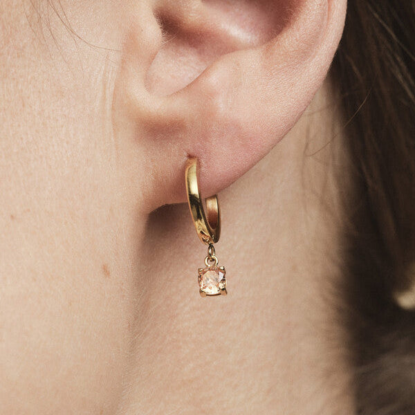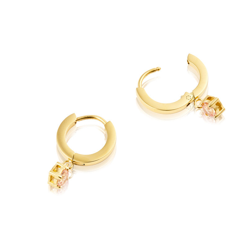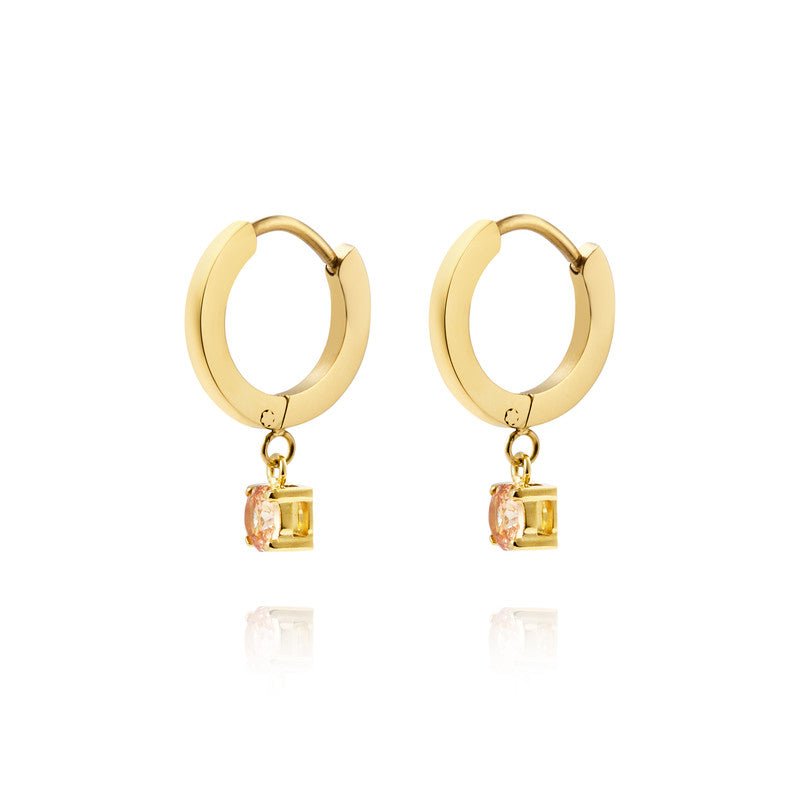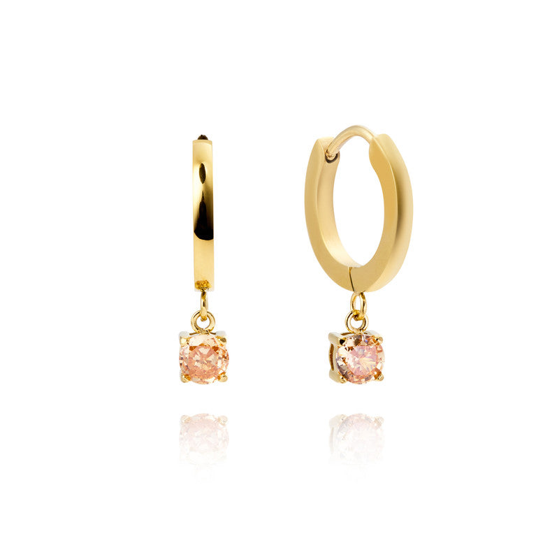 Jolie Champagne Hoops i forgyldt stål er en elegant opdatering af de klassiske hoops, her med runde champagnefarvede zirkoniasten, der tilfører et varmt og luksuriøst skær. Den fine stenfarve skaber et sofistikeret udtryk, der passer perfekt til både hverdag og festlige lejligheder. Fremstillet i rustfrit stål med 18K guldfarvet PVD-belægning er de både slidstærke og vandafvisende, så de bevarer deres farve og glans over tid. Et tidløst smykkevalg, der let kan kombineres med andre øreringe eller bæres alene for et rent og stilfuldt look.