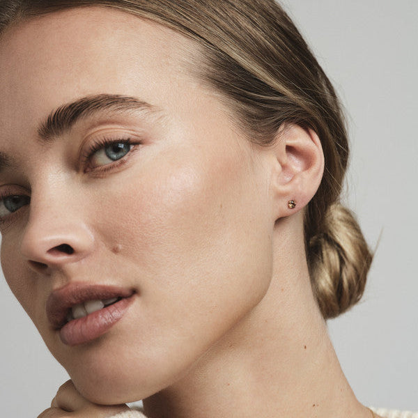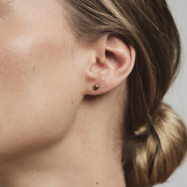 Jolie Coffee Ørestikker Medium i forgyldt stål fra Mockberg forener enkel elegance med en varm, sofistikeret farvetone. De runde kaffefarvede zirkoniasten giver et subtilt spil af glans, der fremhæves smukt af den 18K guldfarvede PVD-belægning. Fremstillet i rustfrit stål er de både slidstærke og vandafvisende, så de bevarer deres skønhed og farve over tid.