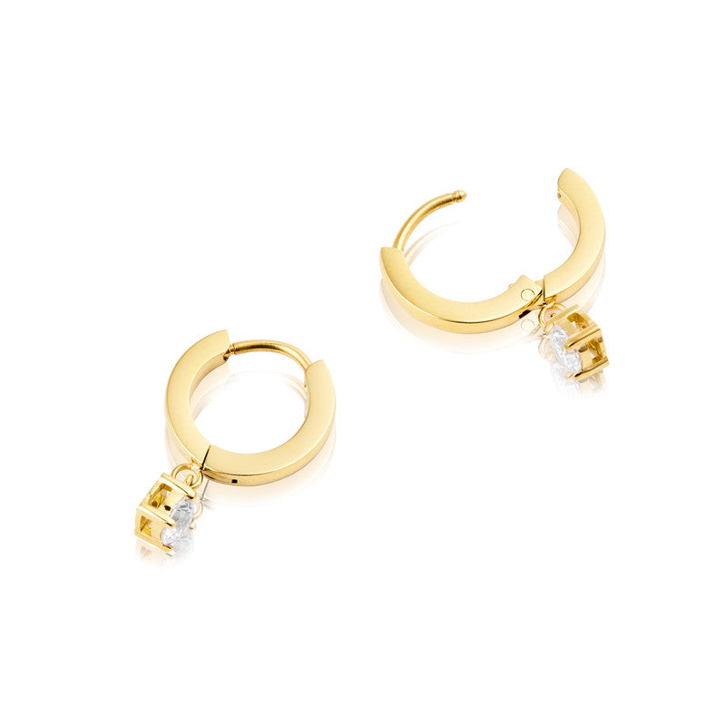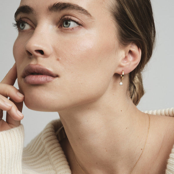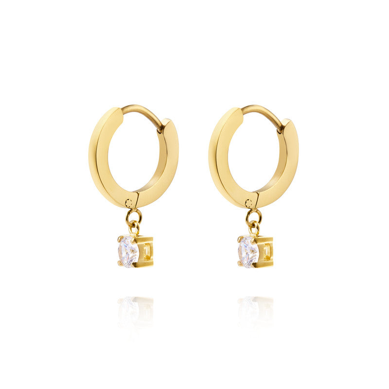 Jolie White Hoops i forgyldt stål kombinerer tidløs elegance med et moderne udtryk, der gør dem til et alsidigt smykke til enhver anledning. De runde, hvide zirkoniasten er indrammet af en varm guldfarvet finish, hvilket skaber et sofistikeret spil mellem farver og materialer. Øreringene er fremstillet i rustfrit stål med en 18K guldfarvet PVD-belægning, der ikke blot tilfører et eksklusivt præg, men også sikrer høj slidstyrke og modstandsdygtighed over for vand.